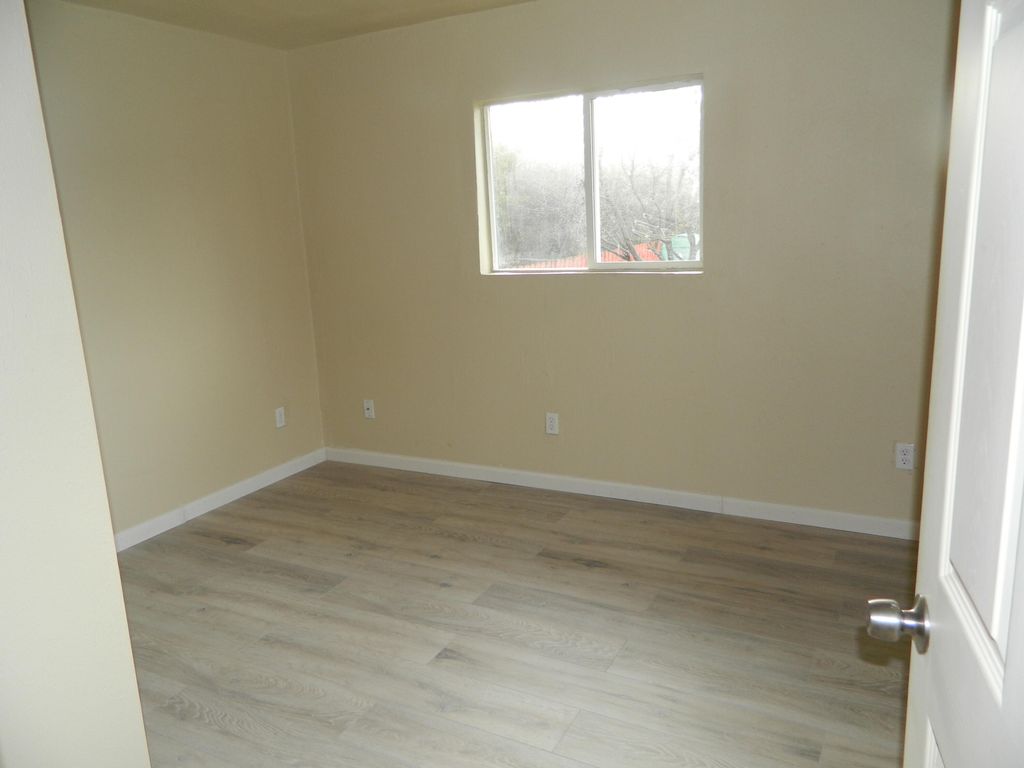 This 3 bedroom 1 bath home with an attached garage that would be a great starter or rental. It has laminate flooring throughout. It has a good open kitchen/dining area. There is alley access to the back yard where there are several fruit trees including plum, apple, pear and peach along with an extra storage building. There is a gas insert in the fireplace