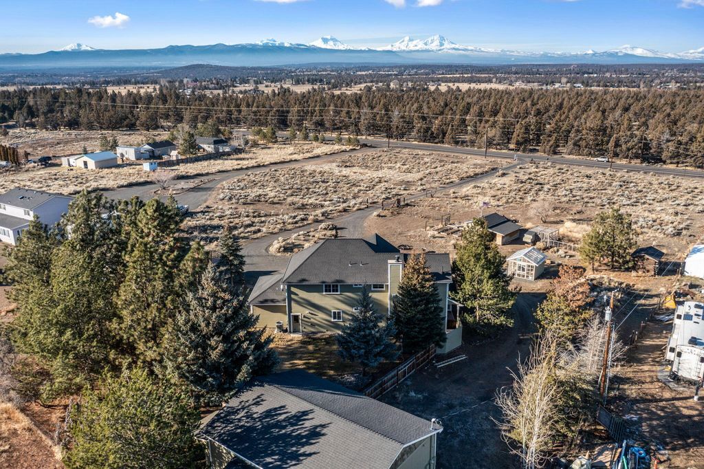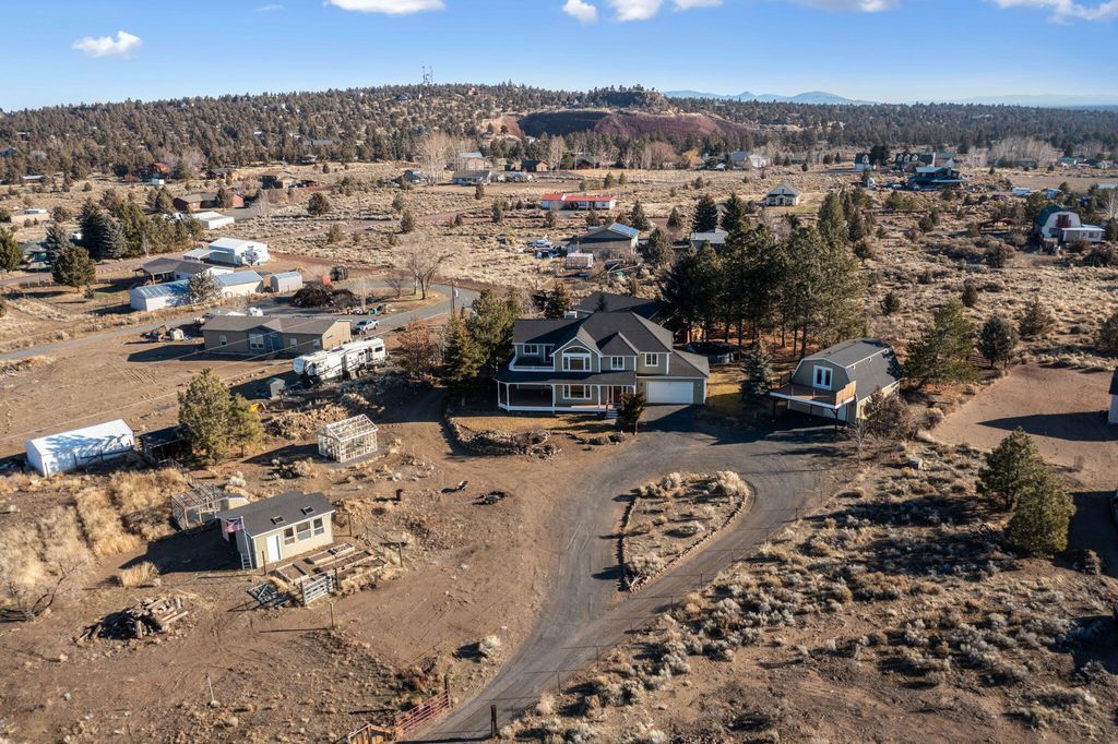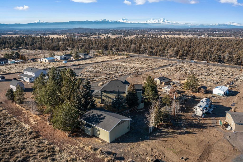 Cascade Mountain Range views, privacy, & unmatched versatility on 2.5 fully fenced acres"”minutes from Bend in the coveted ''Golden Triangle'' of Bend/Tumalo. This exceptional estate offers rare multi-generational living & income potential, featuring a 2,599 sqft custom home with 3BD, 2.5BTH, vaulted ceilings, bonus loft, wood-burning stone fireplace, gas fireplace, & an upper deck with hot tub overlooking the mountain views. Primary suite boasts a spa-like bath with heated travertine floors, jetted tub, & walk-in tile shower. Fully permitted 2BD guest house with full kitchen, laundry, deck, & garage adds flexibility for guests, extended family, or rental use. Hobbyists will love the 30'x40' shop with 200-amp service, 220V hookup, & bathroom. Property includes a greenhouse, irrigated garden with deer fencing, chicken coop, wood storage, & is wired for a backup generator. All buildings painted in 2024. A rare opportunity in Central Oregon - offered at an exceptional value!