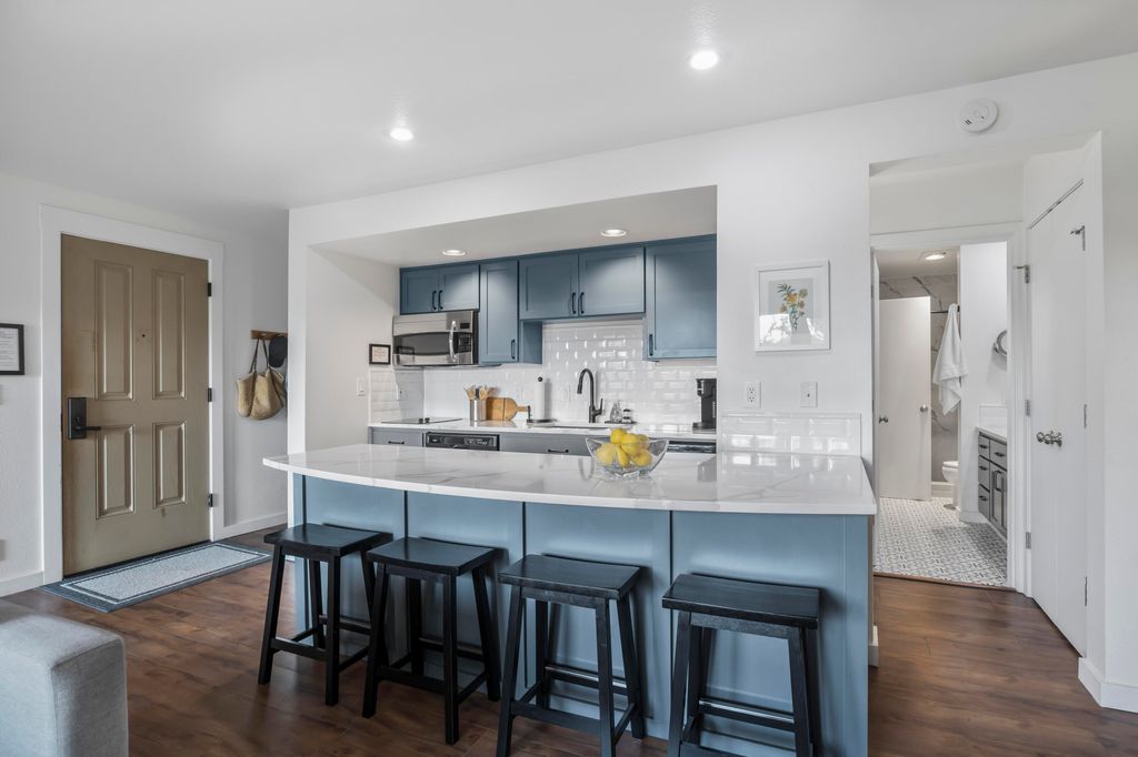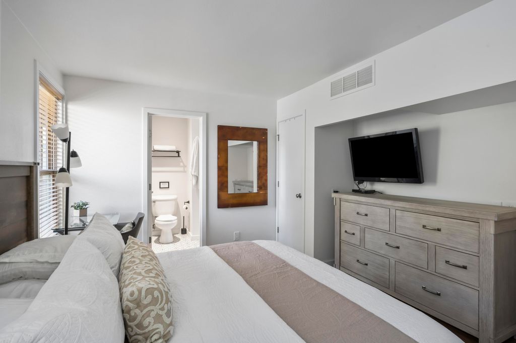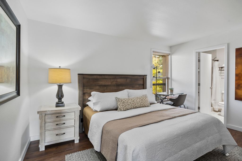 Wow! Bright, elevated and renovated condo filled with natural light, large windows and a balcony offering forest views, sunsets and views of Mt. Bachelor. Open living space features newer appliances, bar seating, built-in beverage center and ample storage, including a secure walk-in storage closet on the deck. Spacious bedroom with king bed with computer desk/workspace, and bathroom accessible from living room or bedroom. Additional sleeping options include a queen Murphy bed and sofa sleeper. Comes fully furnished including housewares"”set up as a turnkey rental or move-in ready. Walk to year-round heated pools, hot tubs, sauna, fitness center, ice rink, on-site bar/restaurant, fire pits and common BBQ grills. Near trails, Deschutes River, Old Mill, downtown Bend, dining, brewpubs and Hayden Homes Amphitheater. HOA dues include water, sewer, garbage, electricity, gas, heating and cooling, basic cable, basic phone, WiFi, landscaping, exterior maintenance and 24-hr security.