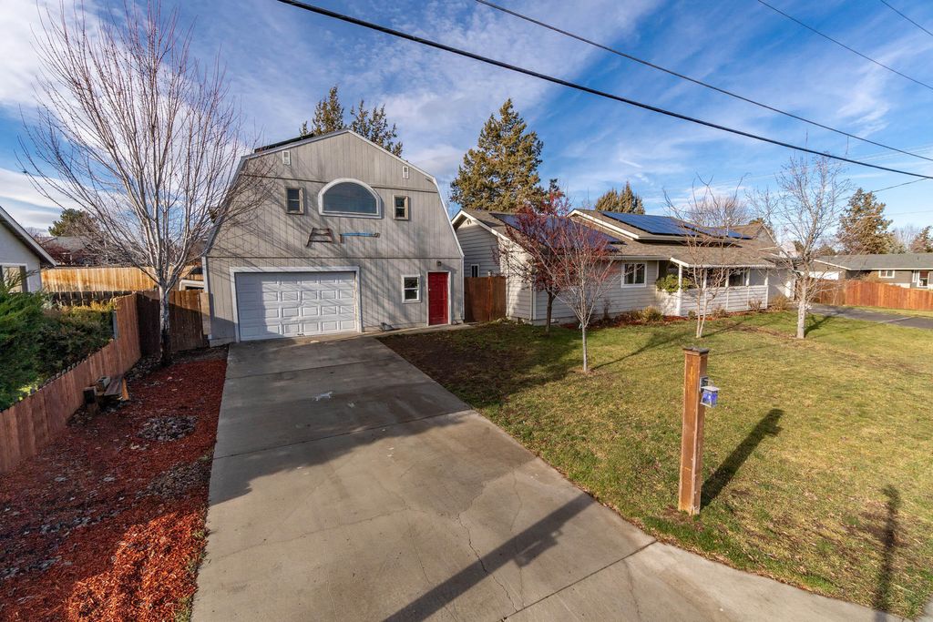Looking for a spacious 952 Sq Ft fully insulated + concrete floors SHOP/Garage? Welcome to 1511 SW 21st Place. A 3BDR, 2BA, 1501 Sq Ft, single level home situated on a 0.32-acre, double lot in SW Redmond. Home features an Open floor plan, vaulted ceilings, Shower/tub combo. Maple cabinets, Kitchen breakfast bar, ceiling fans, laminate counters, dining area, pantry, Primary bedroom on the main, heat pump, Attached 2 car garage, w/ample street parking. Owned SOLAR panels for low utility costs! Fully fenced backyard w/large garden area. Enjoy Hot tub off back deck. DETACHED separate, ready to set up SHOP/GARAGE, RV space or bring all your TOYS! (Motorcycles, Classic cars, boats). Potential ADU buildout above SHOP/Garage building. Possible RV parking next to Shop Building. You'll enjoy excellent access to schools, shopping, Dry Canyon Trail and Quartz Park. Don't miss out on this opportunity!!