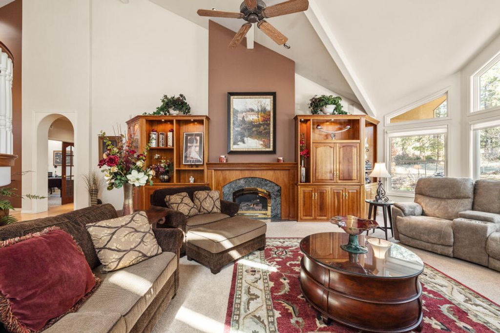 SPACIOUS HOME WITH COMFORTABLE LIVING SPACES AT THE RUNNING Y RESORT. Beautifully maintained, the home's quality and construction are showcased with updates to reflect today's lifestyle. It is a two-level home that lives like a one level - 2 bedrooms and 1 bath in the loft area upstairs. New stainless Wolf appliances include Classic side-by-side-refrigerator, induction cooktop, Pro-Style hood and dishwasher. The main level primary suite features a spa-like bath, and a gas fireplace warms the bedroom. An additional ensuite bedroom is on the main level. The stunning 29 ft. entry features a spiral staircase leading to loft with bedrooms and a flex space plus storage. The open floor plan and large kitchen are perfect for entertaining along with the outdoor patio with views of 7th green. The 4-space garage allows for a workshop -- this one is a must see!