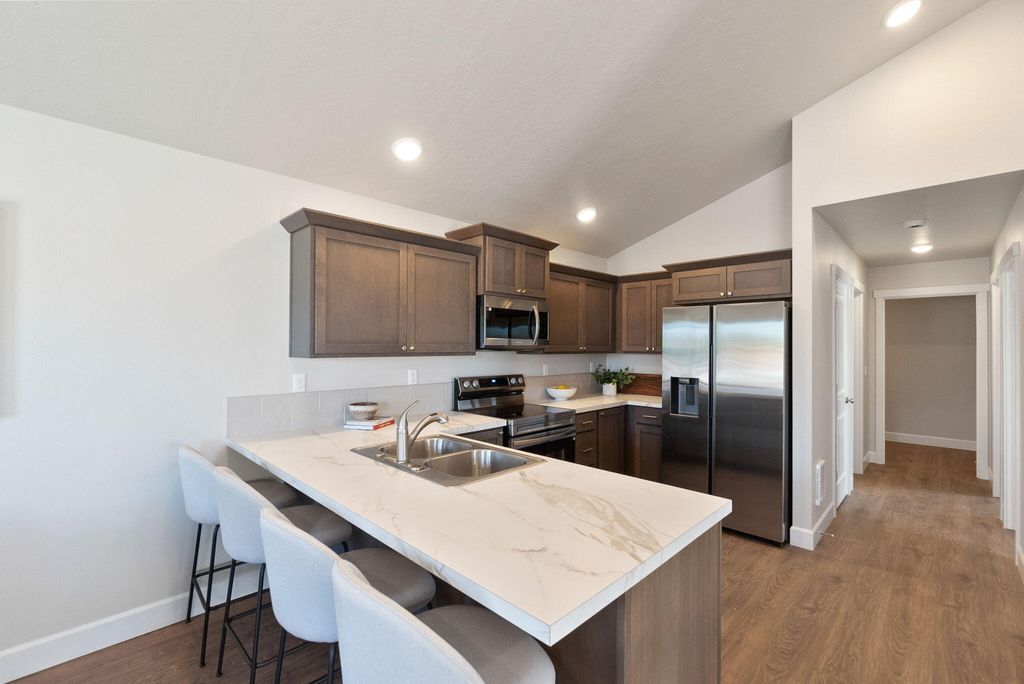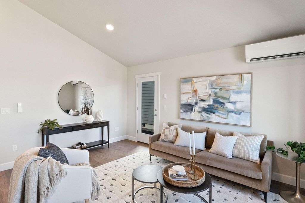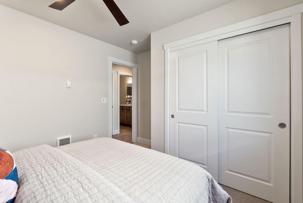 Welcome to the Astoria at Feather Ridge, a single-level home offering 2 bedrooms, 1 bathroom, and 880 square feet of well-designed space. Experience townhome living designed for the Central Oregon lifestyle. This thoughtfully planned home blends the comfort of a standalone feel with the convenience of a lock-and-leave townhome. Unlike traditional designs, there are no shared living space walls with a neighbor; the only connected portion is a secure, private storage area, offering privacy and peace of mind. Inside, vaulted ceilings and abundant natural light create an open, airy atmosphere, complemented by stylish quartz countertops in the kitchen. An attached two-car garage provides ample space for your outdoor essentials. Perfect for those who value space, privacy, and low-maintenance living, this home offers a fresh take on townhome life in Central Oregon.