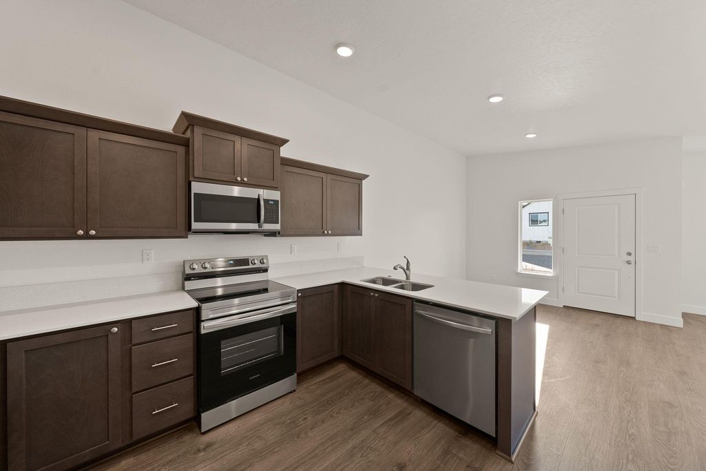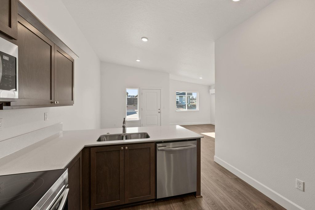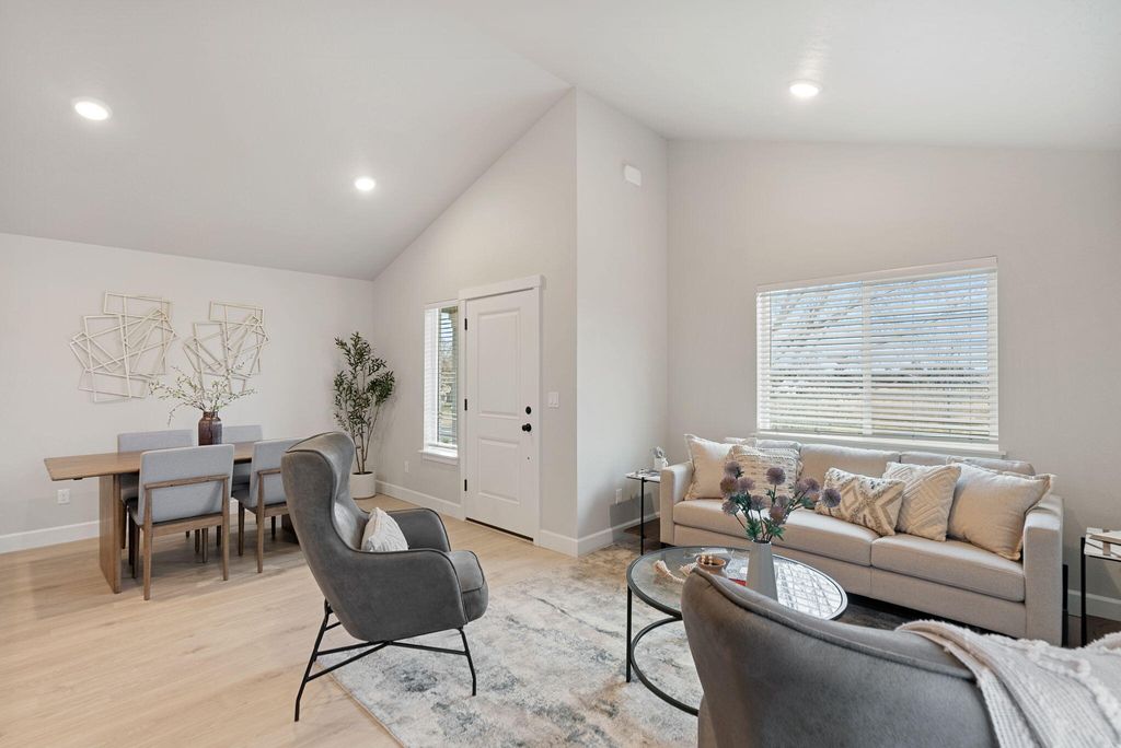 Welcome to the Florence Plan, a single-level 3-bedroom, 2-bath home situated on a desirable lot in Redmond's Feather Ridge community. With 1,102 square feet of thoughtfully designed space, this home features an open-concept layout, luxury wood laminate flooring, stainless steel appliances, and a spacious great room that opens to a covered front porch and rear patio. The primary suite includes a private bath, while the mudroom/laundry room offers convenient garage access. The 2-car garage and attached external storage provide additional space for everyday needs. Located near scenic parks, mountain views, and the future Redmond Recreation Center, the Florence blends comfort and style in a prime location.