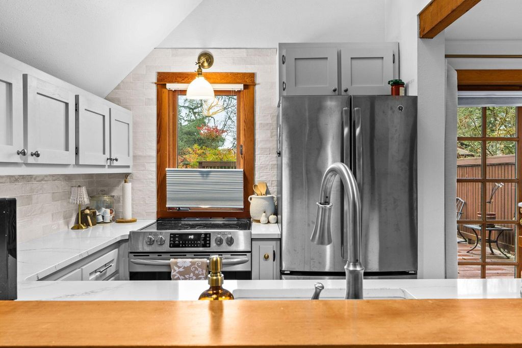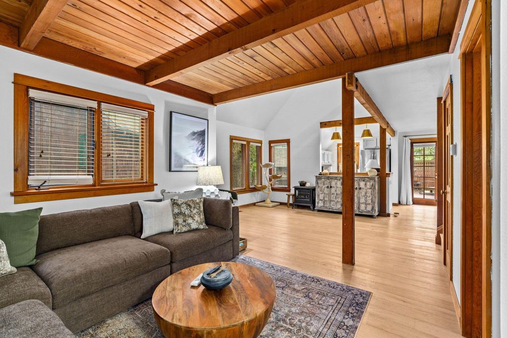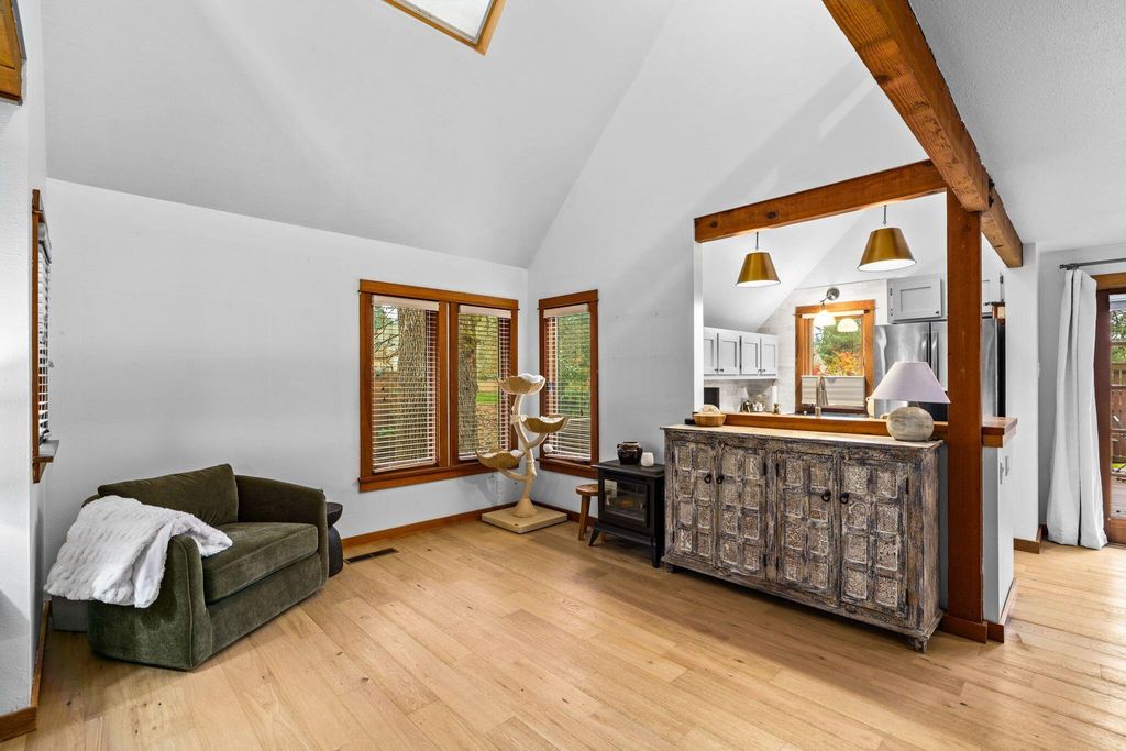 Welcome to your serene retreat! This thoughtfully updated home offers the perfect blend of modern comfort and natural beauty. The open-concept layout creates an inviting flow throughout, while the master bedroom loft provides a private sanctuary above.The kitchen shines with quartz countertops and stainless steel appliances, ready for both everyday living and entertaining. Recent updates include new flooring and newly replaced roof and skylights that bathe the interior in natural light.Step through the French doors onto the back deck and discover your peaceful outdoor oasis, surrounded by beautiful mature trees that provide both privacy and tranquility. Additional conveniences include in-house laundry and AC for year-round comfort. This quiet, tree-lined setting offers a rare escape from the everyday while keeping you perfectly positioned"”just a short drive to the golf course and all essential amenities. Don't miss this move-in ready gem!
