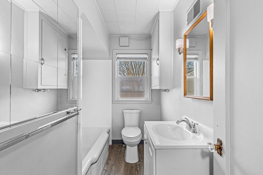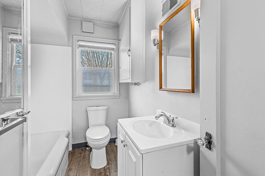 This recently updated cape cod style home with former windows is situated in a charming Southwest Medford neighborhood, This 3-bedroom, 1.5-bathroom home combines comfort, style, and functionality. Upon entering, a spacious living room awaits, featuring a cozy fireplace and newer vinyl flooring. The adjacent dining room and charming kitchen offer generous storage space and cupboards. The main floor accommodates two bedrooms and guest bath, while a third bedroom and a large bonus room are located upstairs, providing ample space, extra storage and a bonus room. Fenced yard front and back with a large parking area that has plenty of room for a RV. Very charming with wonderful curb appeal!
