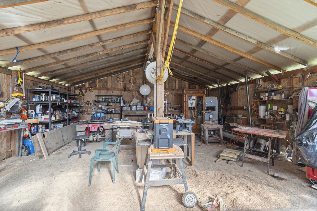 Stunning Country Retreat on 1.41 Acres - Two Tax Lots! Home w/ breathtaking mountain & pond views. Expansive front deck & red cedar gazebo w/ luxurious swim spa (16' x 5' deep, flow jets, fountains, and lights) in back. Private outdoor space features large patio, seating areas, room for garden. Living room w/ vaulted wood ceilings, floor-to-ceiling windows, hardwood floors. Kitchen w/ formica countertops, eat-in bar, custom cabinetry, flowing into dining area w/ wood-burning stove & sliders to back deck. Primary suite w/ private deck access, spa-like en-suite w/ double sinks, French doors to office/reading nook. 2 more bedrooms, full bathroom, laundry room. Loft space accessible via trap door in dining area ceiling. Property is dream for hobbyists & outdoor enthusiasts w/ 1,568 SF machine shop, detached garage, tool shed, RV/boat carport, 4-bay parking shed. Minutes from Powers County Park, where you can enjoy fishing, kayaking, and canoeing on the pond.