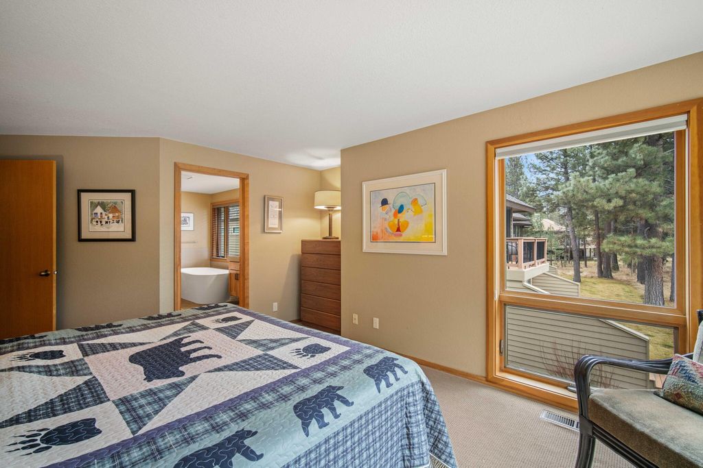 If your Sunriver dream is star gazing on the Deschutes River your dream has come true. This two-story attached, three bedroom, three bath beautifully updated condominium has the luxury of an owners only neighborhood. The upper & lower rear decks of the home provide the perfect setting for long easy days & nights outside; the enclosed front deck provides privacy & easy access. A one car garage & ample parking ensure you can entertain & have access to vehicles close at hand. A seasonal owner only swimming pool & expansive common area adds the final touches for a premium Sunriver living experience. This has always been a second home. New roof in 2024. Association assessment covers exterior maintenance costs of unit. Snow removal to the front door. Grounds maintenance included. Owners able to putter in front garden. Check sunriver owners website for info on internet assessment. Transfer fees $450 & $150 responsibility of buyer. SHARC Assessment Paid in Full