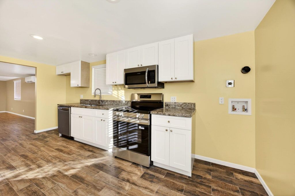 Outstanding extensive remodel of cozy vintage home in established Medford neighborhood. 3 bedrooms, 2 full bathrooms single story home on large level .30 acre lot. New hard surface floors - tile in kitchen and bathrooms and engineered wood flooring in living/dining areas, hallway and bedrooms. New kitchen cabinets, granite countertops, range/oven, dishwasher, range hood with microwave, plus dedicated corner location for stacked washer/dryer connections. Both bathrooms have tiled surrounding walls over steel bathtubs. This level lot location has ample room for additional improvements for ADU, garage/shop, plus RV, boat, etc. parking. Please Note: Due diligence in regard to potential improvements that require approval with the appropriate City of Medford Departments.