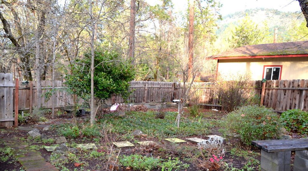 Lovely home set on a generous 1.08-acre corner lot with a peaceful, park-like feel. The property backs to a creek and features mature trees, lush grass, and a charming fenced garden ideal for relaxing or entertaining outdoors. Inside, the home offers a functional layout with ample living space, plus an office conveniently located off the attached garage, perfect for remote work or hobbies. An additional detached garage provides extra storage or workspace. With its classic interior style, this home offers a great opportunity for a new owner to bring their vision to life while enjoying privacy, space, and natural surroundings.