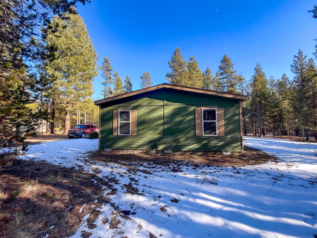 Come Home to this cozy 3 bed/2 bath home on almost 5 acres, set back from road for privacy. Recent new cabinetry in kitchen, big storage shed housing well head, Rheem water softener and much more. Plenty of room for a shop, RV, boat storage or whatever toys you have. Easy access to all the lakes, rivers, mountains and trails nearby. Just minutes to La Pine for shopping, medical, banks, and dining. Sunriver is about 10 miles while Bend is another 15.