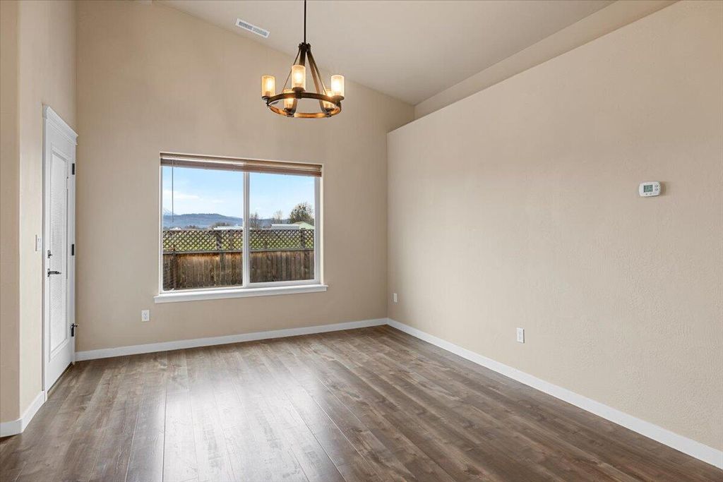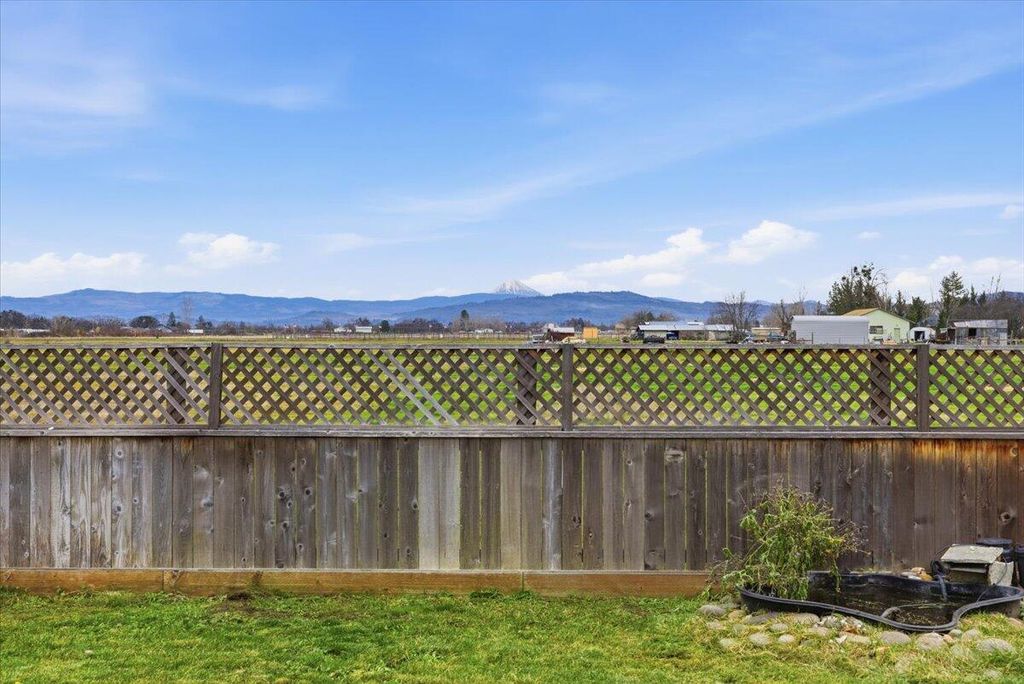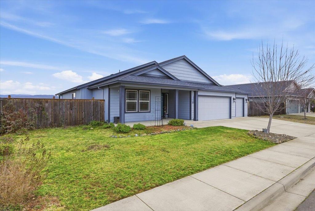 Absolutely incredible one owner custom built home by Bob Fellows Construction, located in the quiet, tucked away beautiful Lisk Estates surrounded by newer homes & offering unobstructed views of Mt. McLoughlin & the surrounding mountainside. This gem features 3-car garage with RV parking, a rare combination. Inviting open floor plan offers vaulted ceilings with an abundance of light, with back garden access from the dining room. Inside find upgraded laminate floors in the entry, hallways, kitchen & dining area, carpet in the bedrooms and living room & tile floors in both bathrooms & laundry room. Kitchen includes granite countertops, upgraded lighting, tile backsplash, island with sink, soft close cabinets & stainless steel appliances. Split bedroom layout offers privacy, with the primary suite featuring double sinks, huge shower, large walk-in closet & abundant storage. Back garden offers views, planter boxes & cross fencing for animals. This charmer is move in ready!