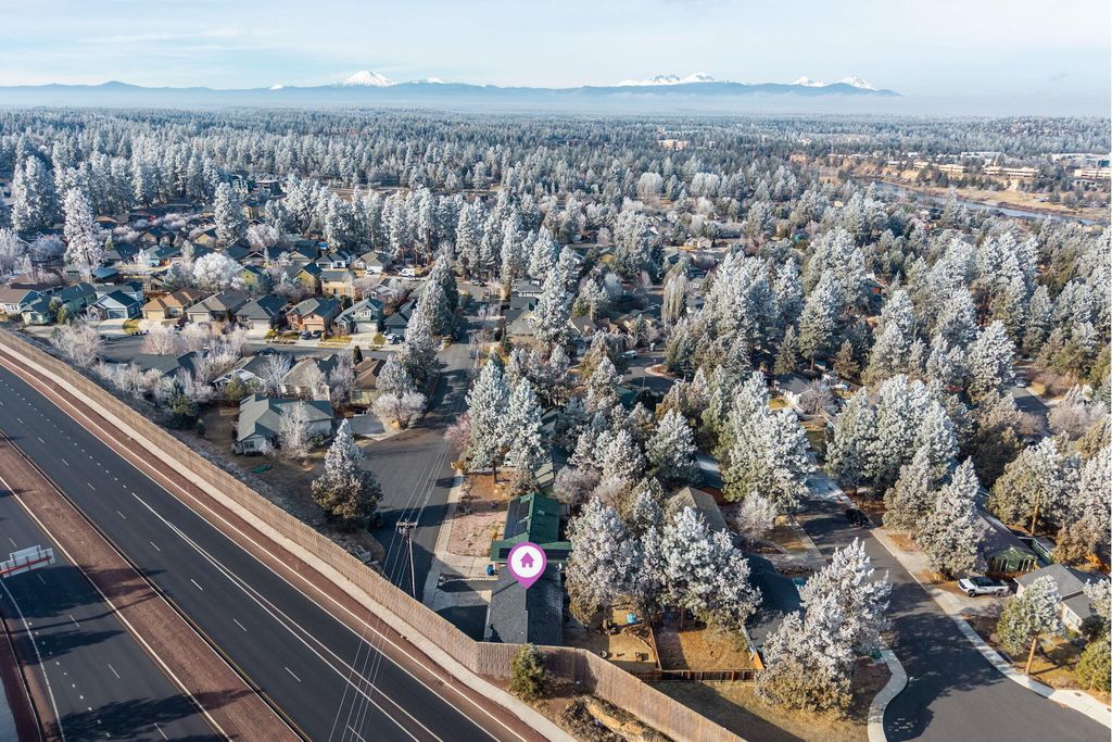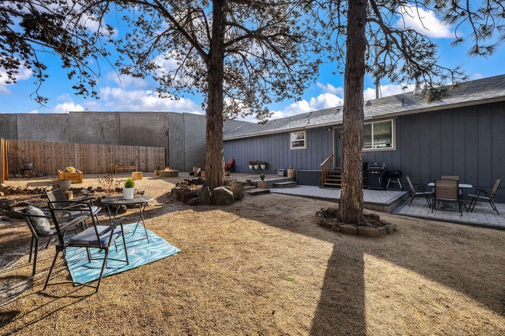 Discover this charming single-level home in Southwest Bend's desirable Old Mill District, just a short walk to the Old Mill Amphitheater. This light-filled residence features a remodeled kitchen with island, two updated bathrooms, and a south-facing great room with abundant natural light and a cozy wood stove. Energy efficiency is enhanced with mini-split heating and cooling. Situated on a private lot at the end of a quiet cul-de-sac, the fully fenced backyard offers a paver patio, fire pit, and generous space for entertaining or gardening. The converted garage provides a flexible bedroom or bonus room with additional storage. New roof in 2018. Enjoy close proximity to scenic trails, shopping, dining, and all that defines the Bend lifestyle.