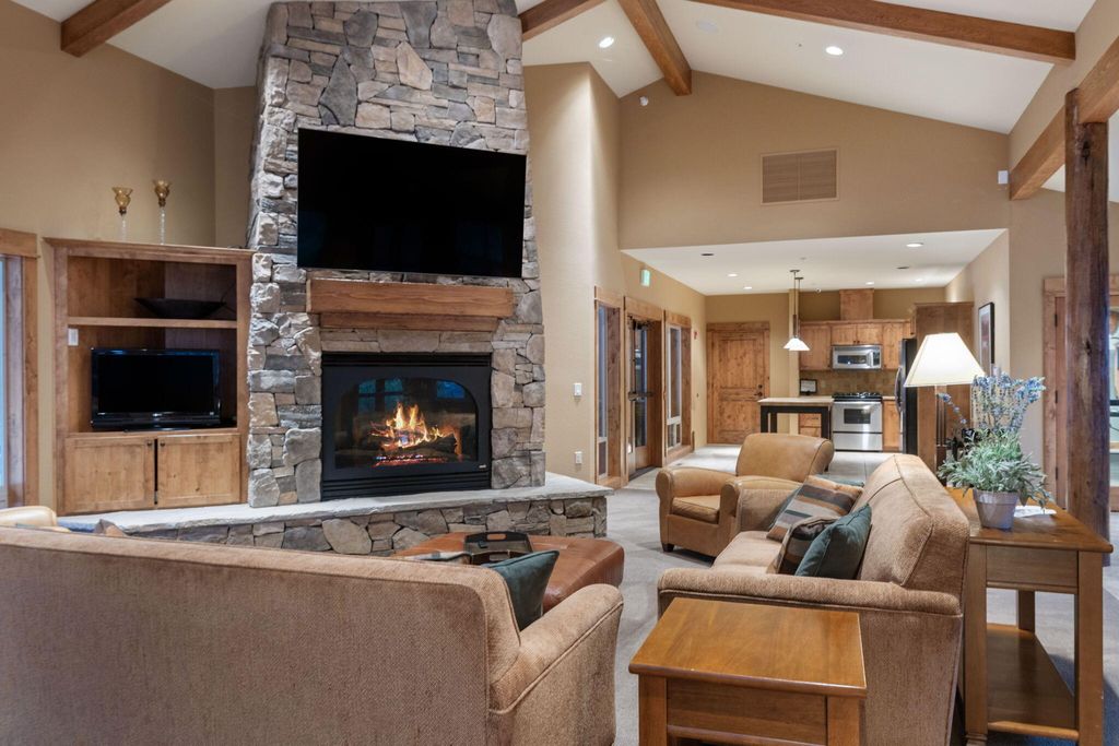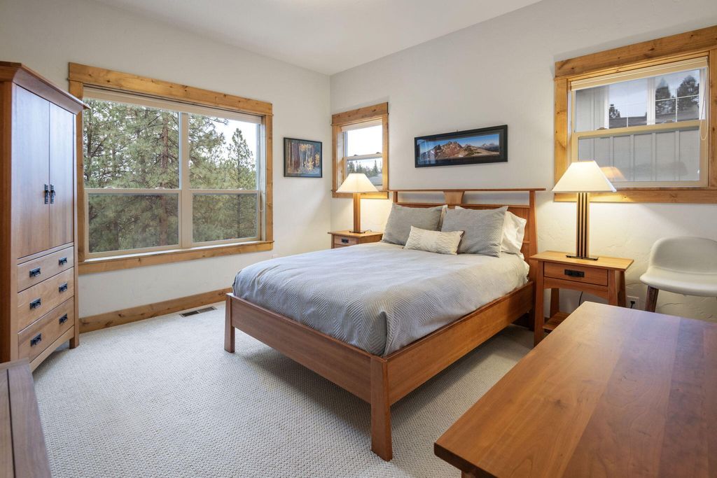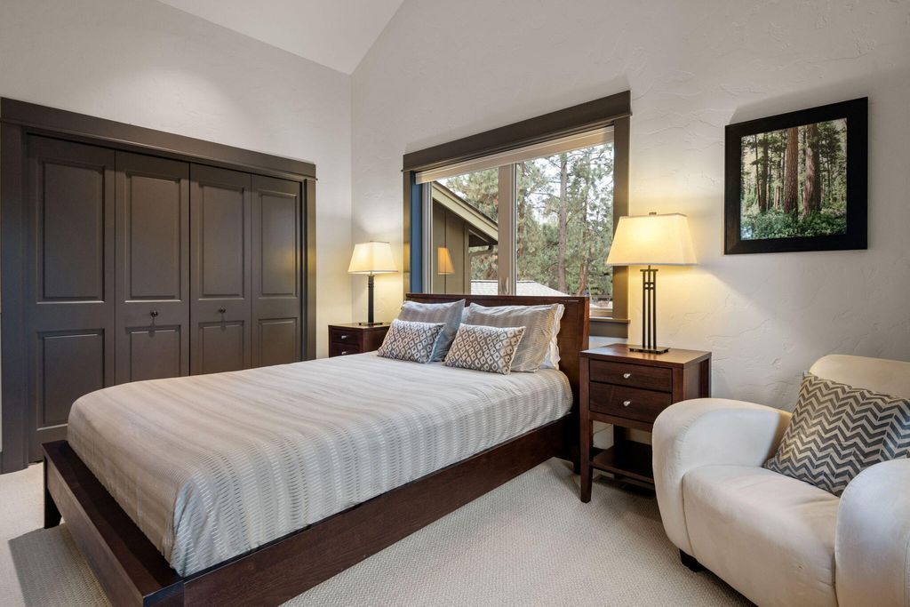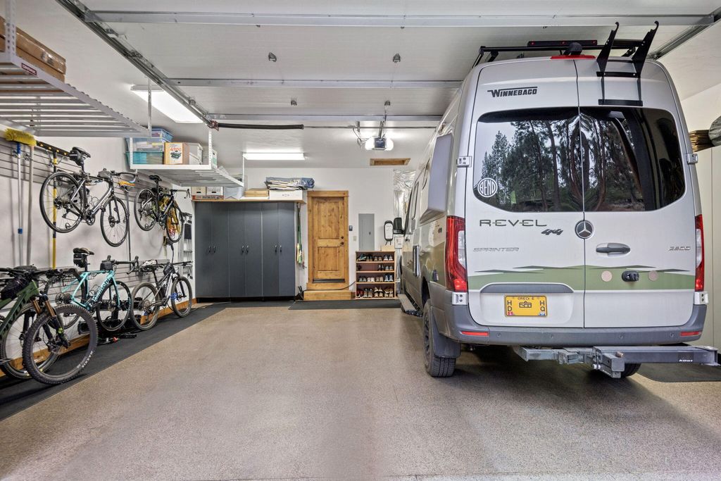 Super private w/ a front porch set back from the street & canyon-side outdoor living that opens to forest + river views. The oversized 2 car grg w/ 10' high door, epoxy floors, EV charger & great storage. Your Sprinter van fits! STR eligible. Pool + clubhouse.