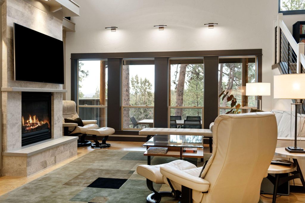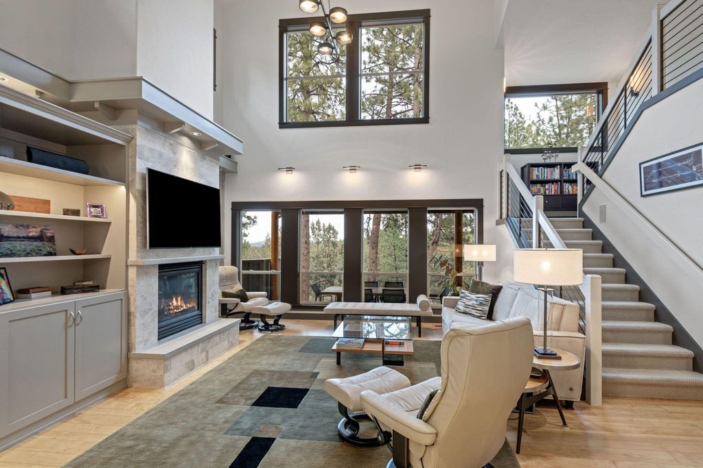 Riverfront Property in SW Bend! This 3 bdrm (prmry on main lvl) + loft, 2.5 bath single family home occupies .27 acres & a rare position: the last residence built in the community, backed by protected canyon land where the landscape, not future development, defines the view and a ''(Deschutes) River Runs Through It.'' Simply put, this is a one-of-a-kind offering. Soaring ceilings & incredible sun-filled spaces, the recently updated home is 2,550 sq ft of modernized living space; a permitted loft expansion: entirely move-in ready. Interior refresh: refinished solid maple hdwd floors, resurfaced frplc, updated lighting, new carpet, Macauba Supreme quartzite kitchen countertops & newer KitchenAid + Electrolux appliances.