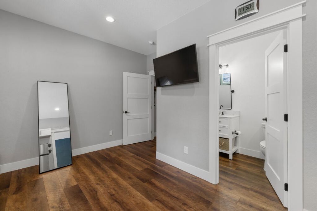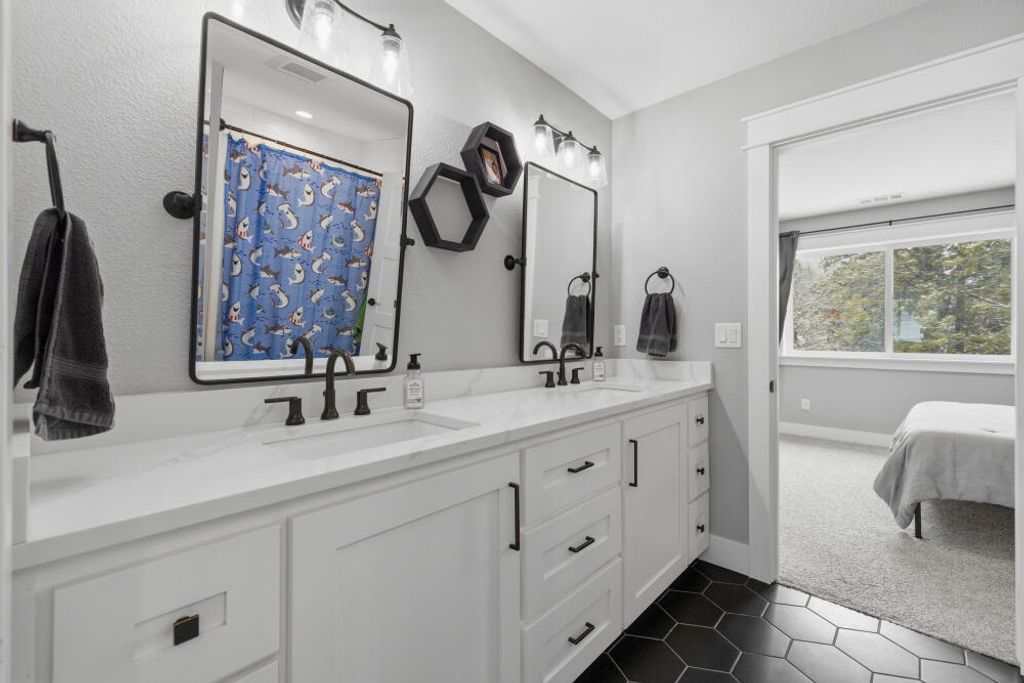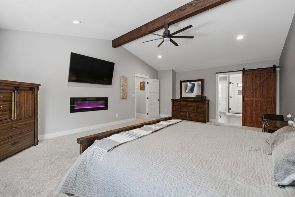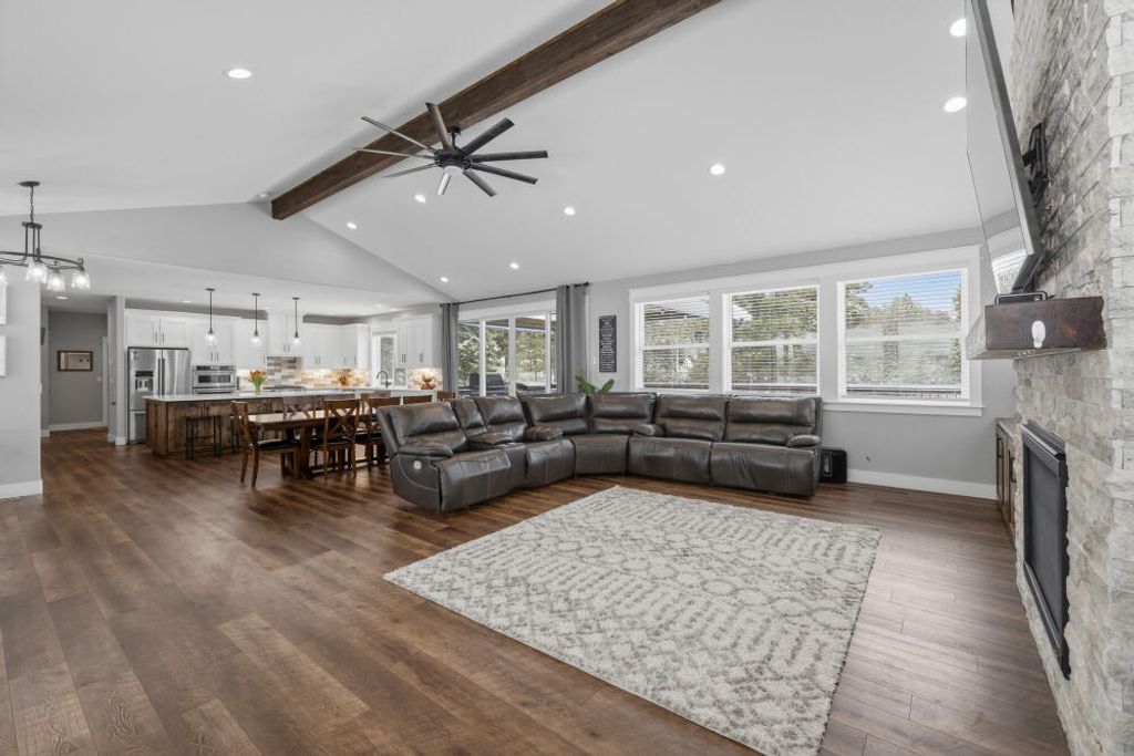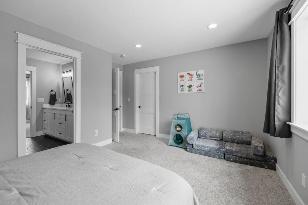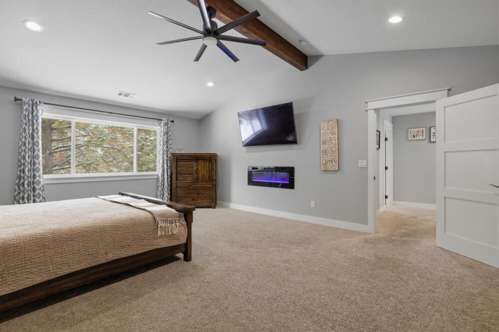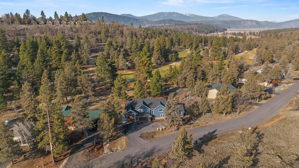 NEAR NEW HOME AT THE RUNNING Y RESORT WITH A HUGE RV GARAGE AND SEPARATE SUITE. 3,726 SF luxury home located on the 14th hole, close to a walking path. The great room welcomes you! Well-appointed kitchen confirms this is truly a special estate. Main level bonus suite with mini kitchen, bathroom, deck/private entry, for many options. Upper level has 3 large bedrooms, plus oversized playroom or bedroom #5. The primary suite has golf course views and a cozy fireplace. Luxuriate in the 6-foot soaking tub with a 2nd fireplace or custom shower. This quality home includes dual dishwashers, 5'x9' exquisite quartz kitchen island, covered deck, towering ceilings, LVP flooring, 2 HVAC systems, Tesla charging station, oversized garage with heated RV space, basketball court, 3 gas fireplaces, all located on two combined lots for.62 acres. Constructed in 2022, current property taxes are $5,061 - a great value for a large home. The moment you enter this custom estate, you will feel right at home!