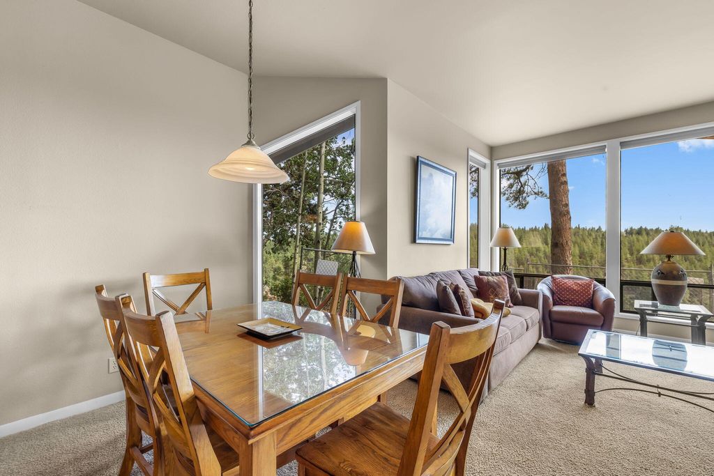 Take in sweeping river views from this 2-bed, 2-bath River Ridge condo perched above the Deschutes River in Mt. Bachelor Village Resort. Filled with natural light, the open-concept great room offers vaulted ceilings, a gas fireplace, and a seamless indoor-outdoor flow. The spacious primary suite features private deck access, a walk-in shower, and an XL closet. The second bedroom functions as a lock-off suite with its own entrance--ideal for guests or short-term rental income. Updated decks overlook the river, perfect for morning coffee or sunset views. Additional highlights include a detached garage, private storage, and access to resort-style amenities: pool, clubhouse, and direct access to the Deschutes River Trail. With a prime location near the Old Mill District, Hayden Homes Amphitheater, downtown Bend, and Mt. Bachelor, this turnkey condo is the perfect four-season getaway or income-producing retreat in the heart of Central Oregon.