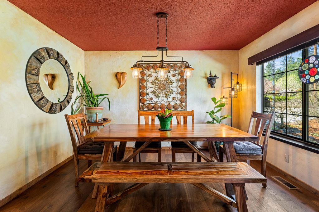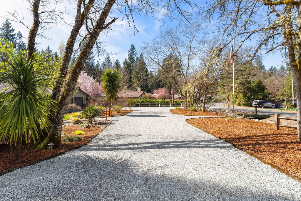 Exquisite, elegant ranch-style home on 1.75 acres in the desirable Redwood area! Located at the end of a quiet cul-de-sac with space between neighbors and just minutes from downtown, this property offers privacy and charm. Spacious updated kitchen featuring cement countertops, soft-close cabinetry, wine fridge, and a 36-inch dual-fuel gas Wolf range. New French oak hardwood flooring. Updated primary bathroom with Jacuzzi tub. Flexible bonus room could serve as a 4th bedroom or office. Outdoor living shines with a gorgeous deck and outdoor kitchen. Just down the steps, enjoy a new hot tub on its own pad. Surrounded by nature and a beautiful tree line, the terraced backyard includes raised garden beds, patio space, and room for recreation. Two-car garage with workshop space, covered RV hookups with water and electric, landscaped grounds irrigated by GPID, and ample parking. Come see to believe!