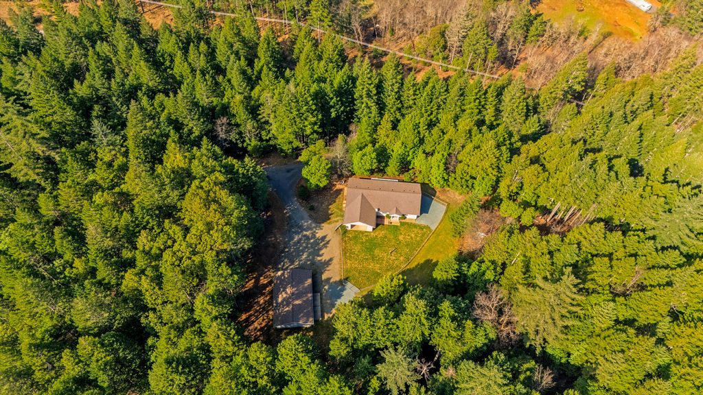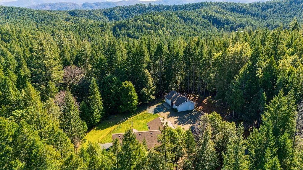 Perched atop a gentle knoll for exceptional privacy and tranquility, this 1,539-square-foot ranch-style home rests on 7.2 wooded acres in O'Brien, Oregon. Built in 2003, the three-bedroom, two-bath residence features a brand-new custom shower, jetted tub, and updated appliances including cooktop, dishwasher, dryer, and washer. Central air conditioning and a forced-air heat pump maintain ideal comfort, while oversized picture windows capture stunning forest views. Unwind on the deck surrounded by native plants and landscaped grounds, immersed in nature. Practical elements include a large garage with workshop, carport, RV hookups and parking. Conveniently located near the Illinois River, local amenities, and swift routes to the California border, Redwood National Forest, and coastal attractions, this serene retreat balances seclusion with easy reach. Call for a showing today!