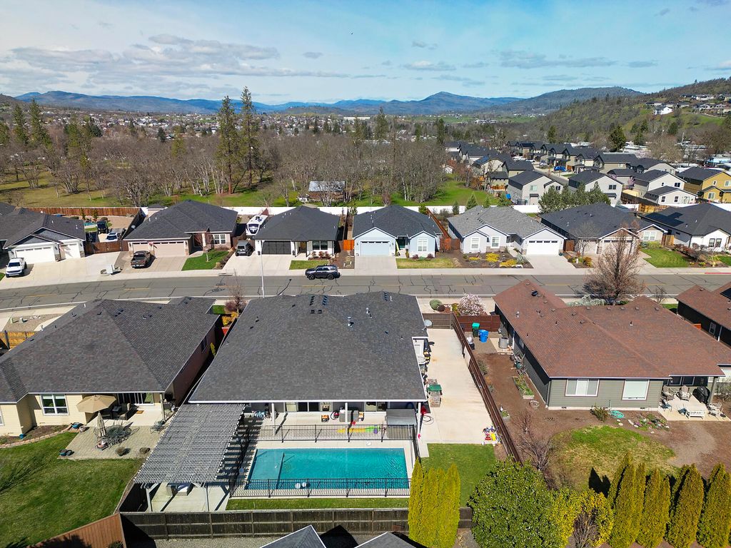 The home includes 3 spacious bedrooms plus a large office that could easily serve as a 4th bedroom, guest room, or flex space. The bright and open living areas flow seamlessly to the backyard where you'll find your own private in-ground pool -- perfect for relaxing or entertaining during our beautiful Southern Oregon summers.