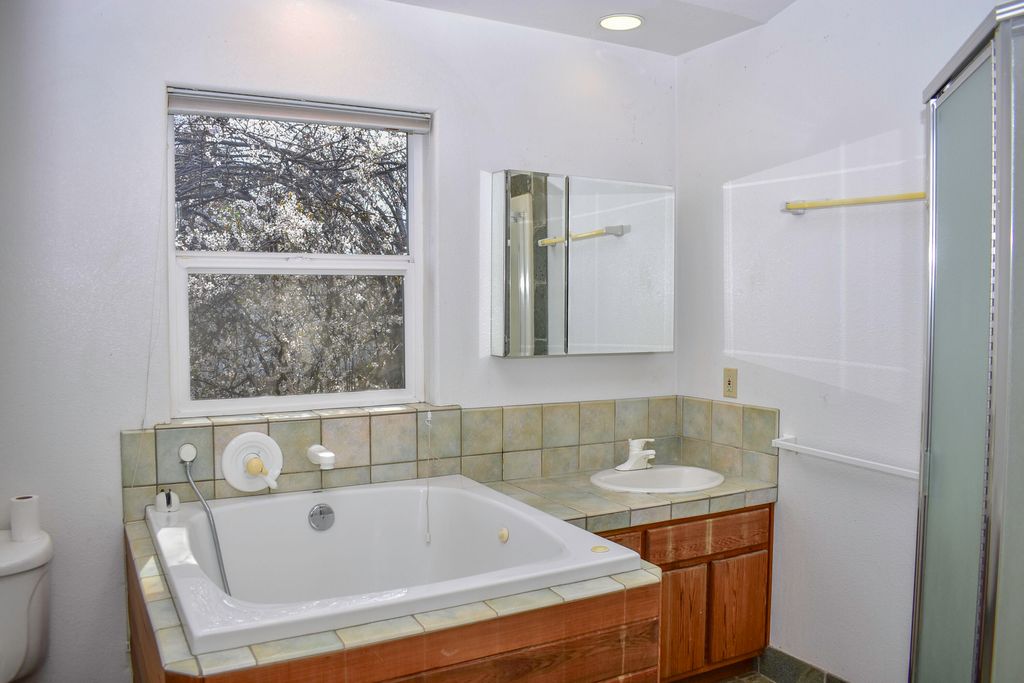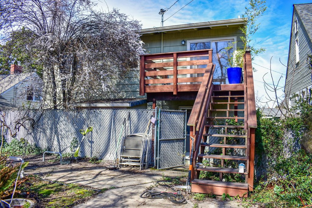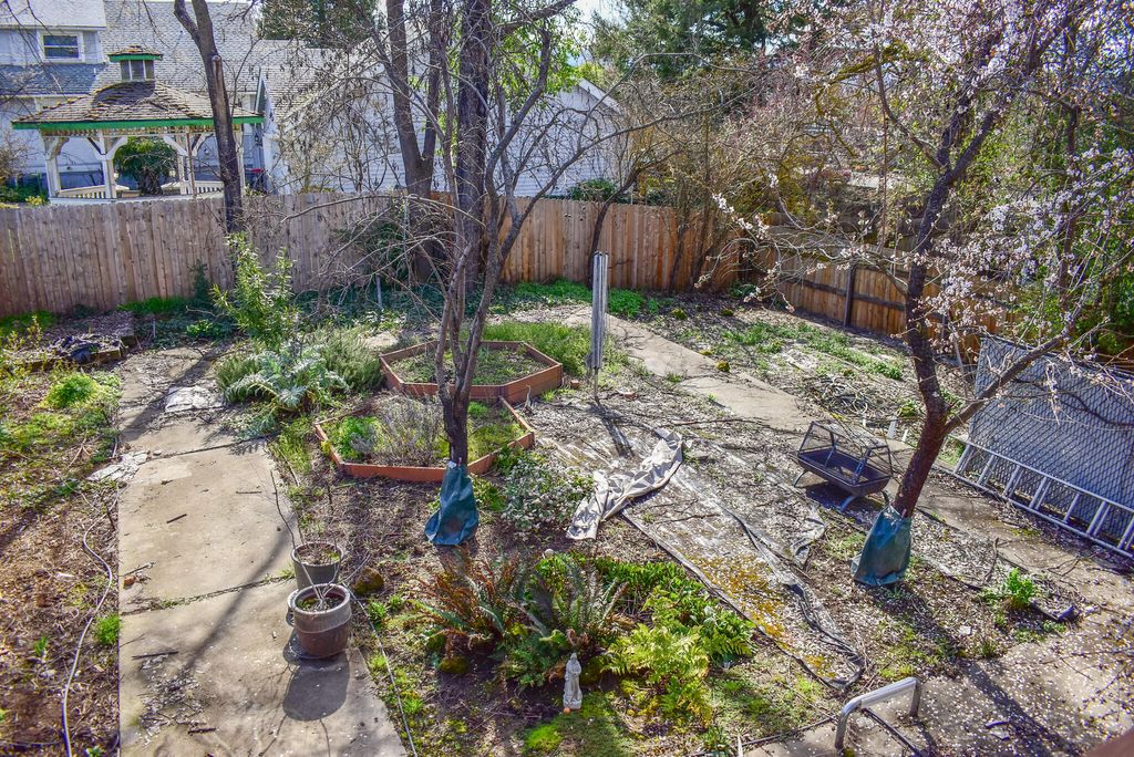 hardwood floors, Anderson double pane windows, central HVAC, lots of storage, & vintage vibe! ADU is lower level, on other side of Main House living room, has newer finishes, 1 bed/1 bath, own laundry, kitchen, entrance, own electrical meter, & ductless HVAC. Main house upper level has serene larger bedroom, tons of natural light, walk -in closet, & vaulted ceiling. Full bath with soaking tub & separate shower on other side of wall to larger bedroom. Upper level includes laundry + half bath. Main house lower level has ample living room, enclosed kitchen + pantry on other side of wall. Lower level includes formal dining area. Fenced backyard has existing glorious garden awaiting new hands! Detached single car garage. Upper level remodeled due to fire. Backyard formerly had inground pool current owner filled in for garden. Main house professionally cleaned. Fresh inspection solid & on MLS. ADU has tenant