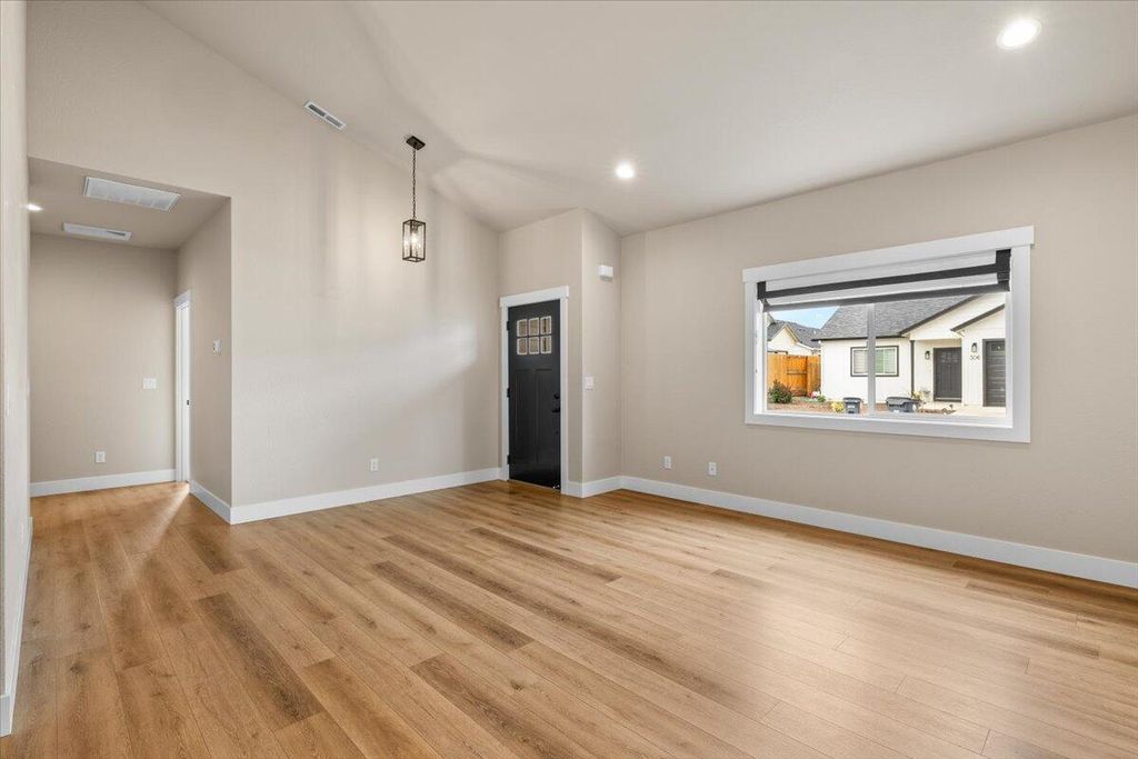 Welcome home to this beautifully maintained, like-new property featuring a highly desirable open floor plan designed for easy living. The inviting kitchen offers warm wood cabinetry, granite countertops, and a convenient eating bar that opens seamlessly to the main living space. Soaring 13-ft vaulted ceilings combined with 9-ft ceilings throughout create an airy, light-filled feel you'll love. This 3-bedroom, 2-bath home offers 1,276 sq ft of thoughtfully designed space, including a full laundry/mud room with additional storage for everyday functionality. Fresh landscaping adds great curb appeal, and the meticulous care of this home truly shows. Stylish, open, and move-in ready--this is one you won't want to miss. Schedule your showing today!