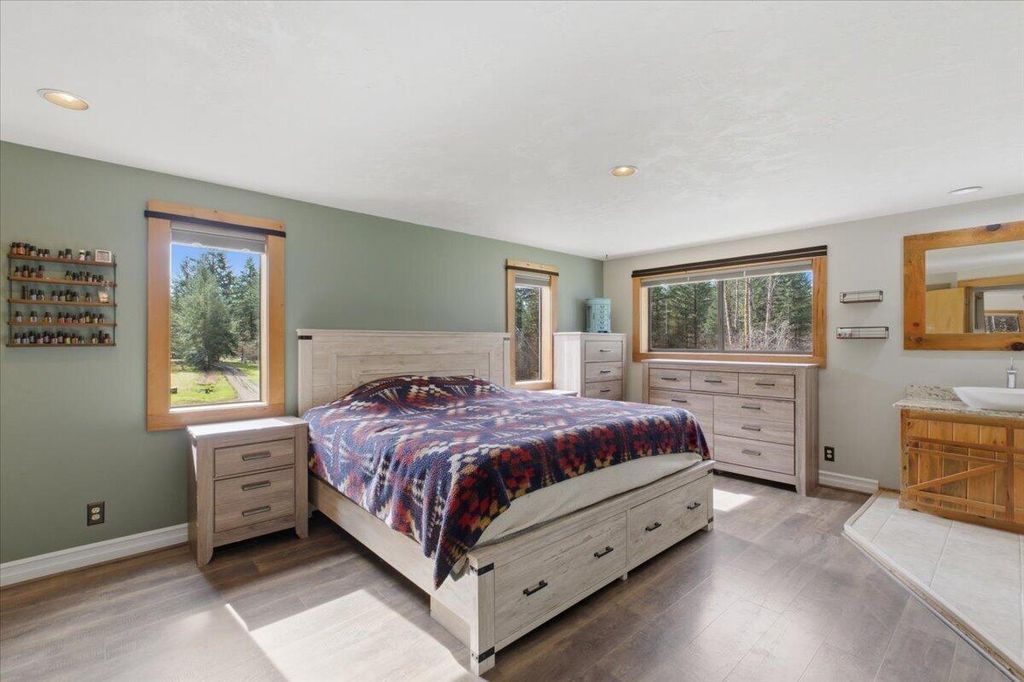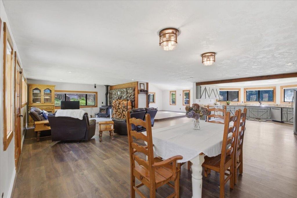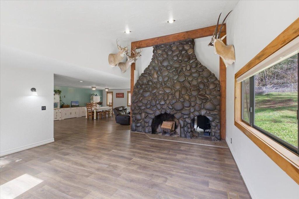 Welcome to this beautifully maintained home on a flat, private 12-acre lot. Inside find a grand dual-sided stone fireplace & wood stove in the open living areas w/vaulted ceilings. Spacious kitchen w/expansive windows framing peaceful views. The main level incl. primary suite, generous dining area, oversized mudroom, and garage/storage area. Upstairs, incl remaining beds/baths, & bedroom w/built-in loft. property offers abundant opportunities w/ space for shop, RV & more.