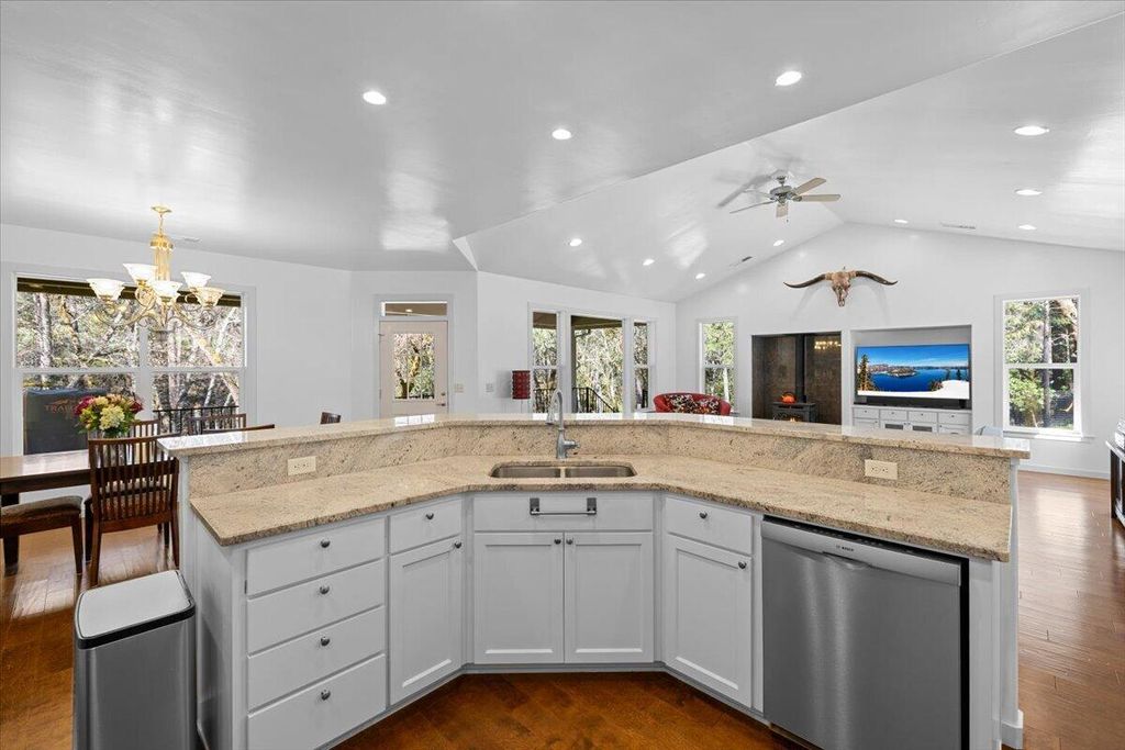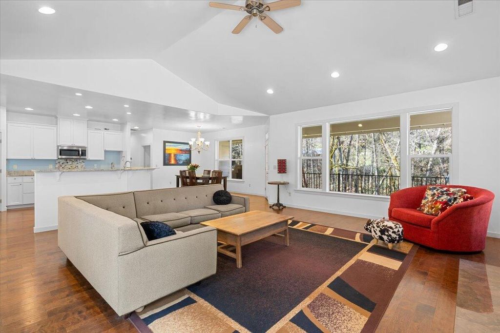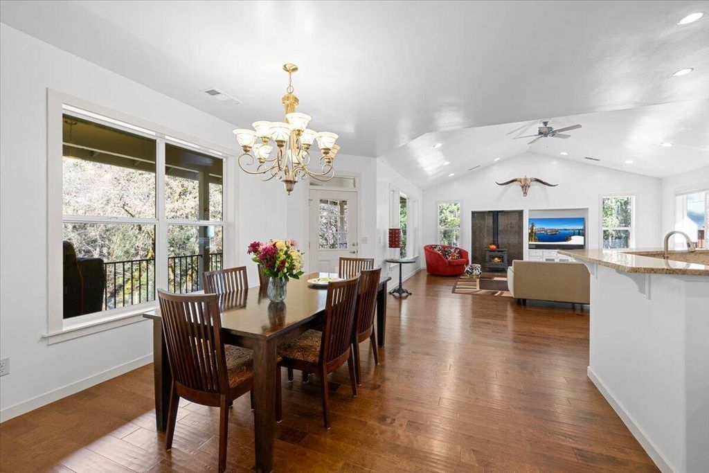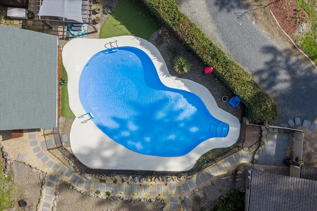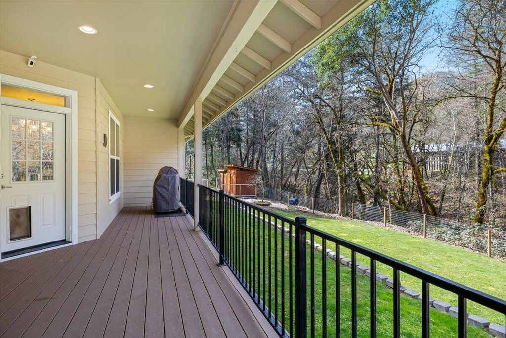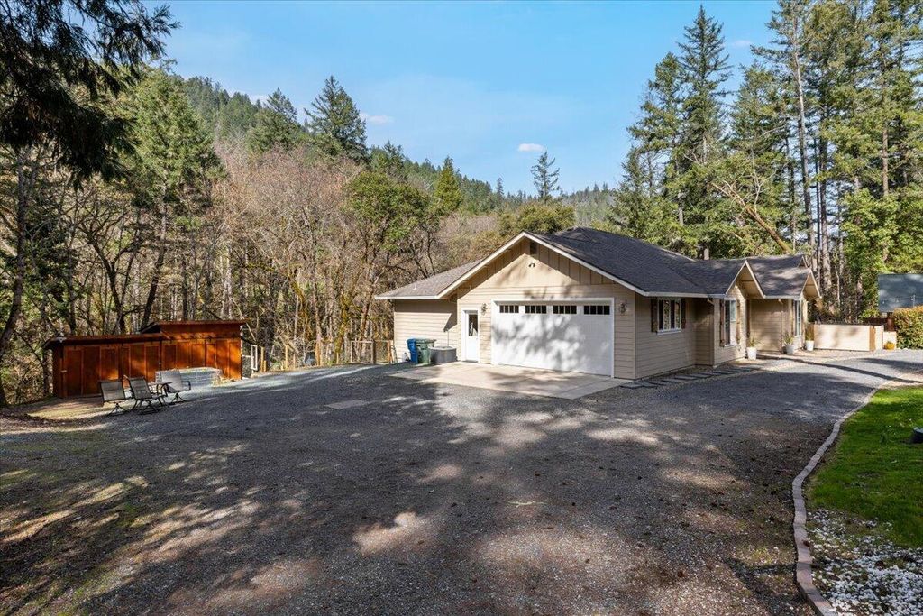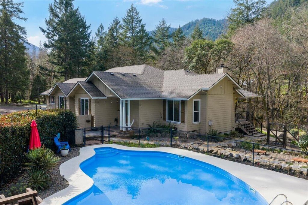 Built in 2015 and meticulously maintained, this immaculate single-level home sits on 1.3 acres of pure splendor overlooking Savage Creek. Fully fenced for privacy and peace of mind, the property also features a separate fenced garden area--perfect for growing your own produce or flowers year-round. Inside, you'll love the spacious open floor plan highlighted by large windows that capture the sights and sounds of the creek below. Step outside to your own summer retreat with a beautiful inground pool, ideal for entertaining or relaxing on warm Southern Oregon days. The charming ADU with new flooring is perfect for guests, extended family, or potential rental income. With Spectrum high-speed internet and a whole-home generator included, you'll enjoy modern comfort and reliability in every season. Private, polished, and move-in ready.