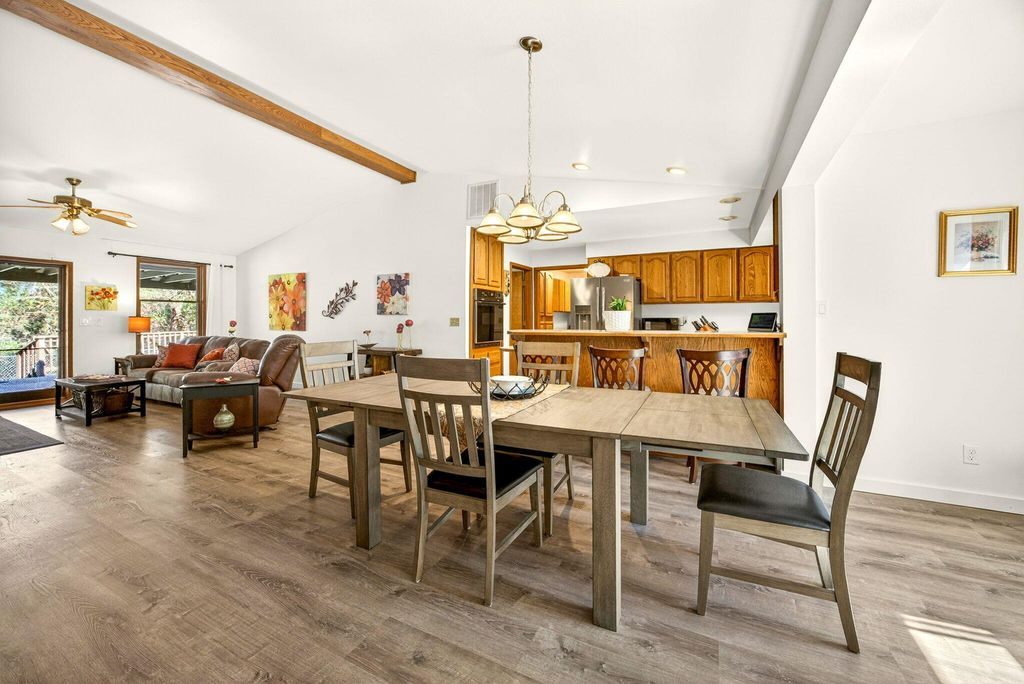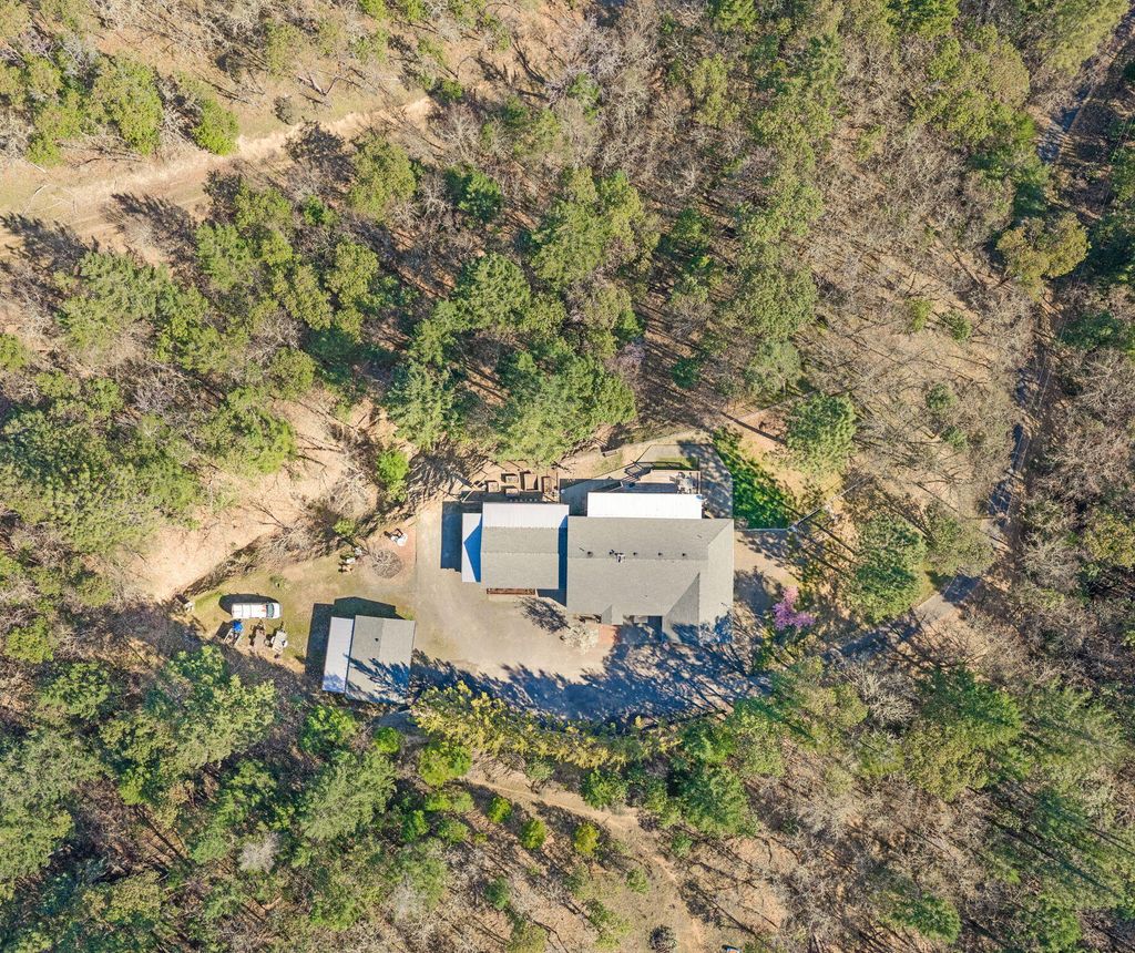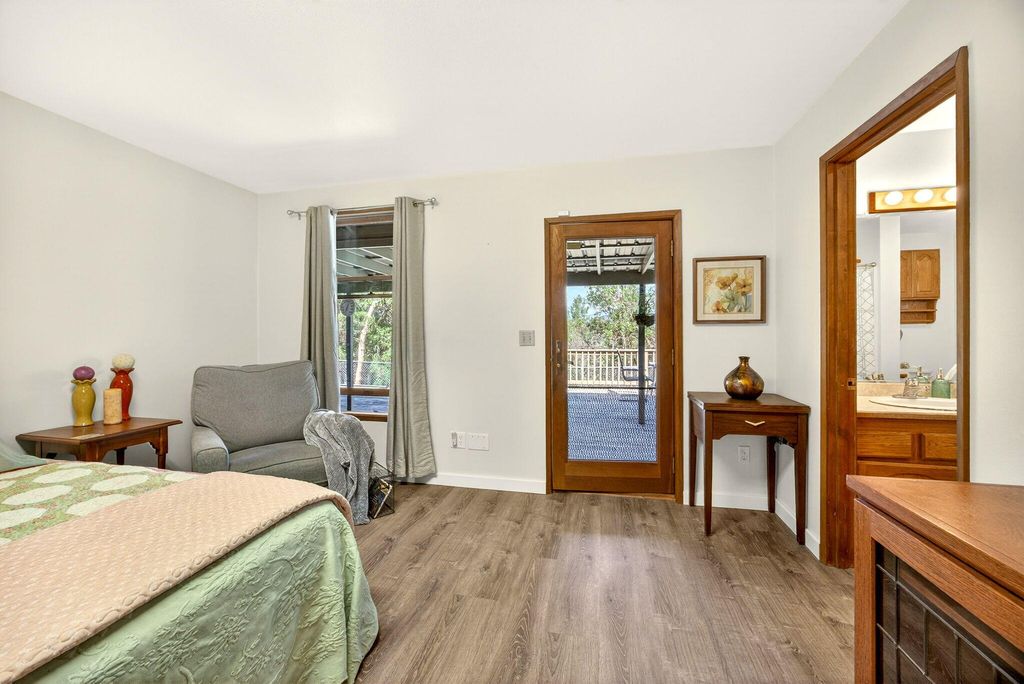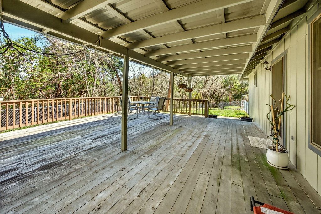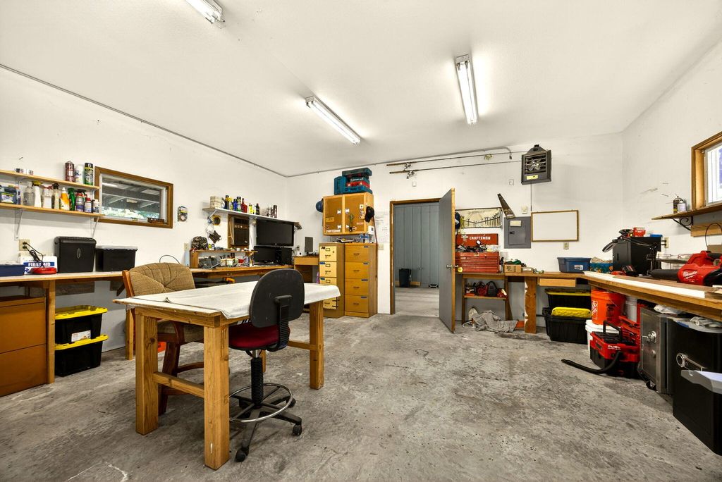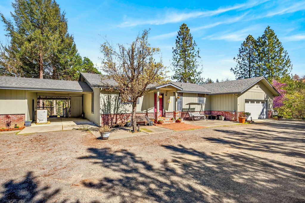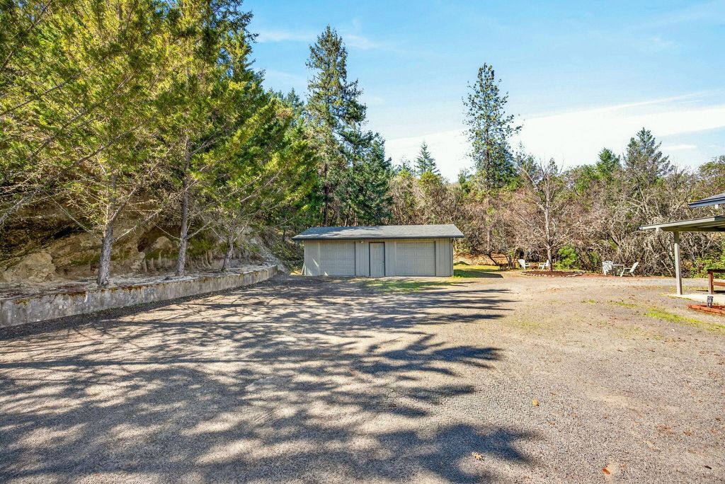 Private and secluded, yet close to town. 1932 square foot 3 bed 2 bath home built in 1990 on almost 6 acres with abundant shop/garage space. Open floor plan with vaulted ceilings. Pantry in kitchen. Low profile walk-in shower and walk-in closet in primary bedroom. Vinyl plank flooring throughout. Wood framed double pane windows. Fenced backyard area with designated garden area. Chip seal driveway. Hunter cable available at road. 1576 s.f. total garage and shop space! 576 s.f. attached garage. 400 sf. detached shop and an additional 600 s.f. detached garage. Also there is a 500 s.f. covered breezeway. and a 300 s.f. carport. you will find over 1000 s.f. of decking and 600 s.f. of concrete patio space as well. Truly a unique opportunity.