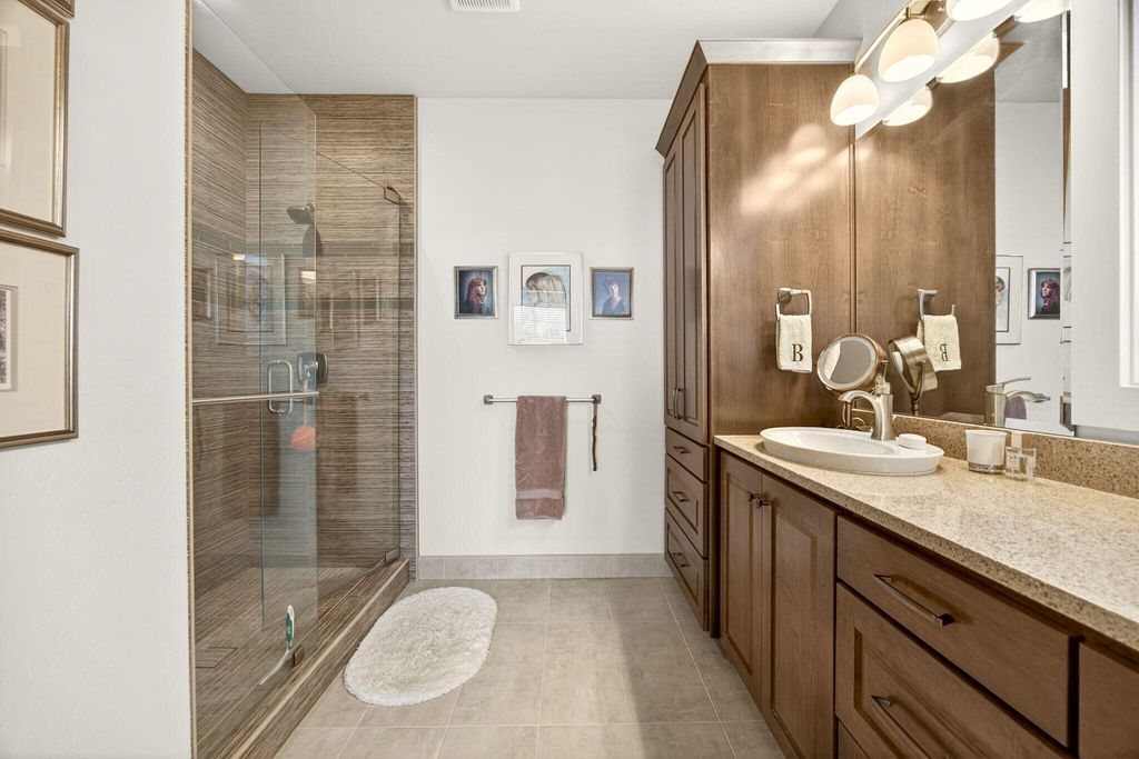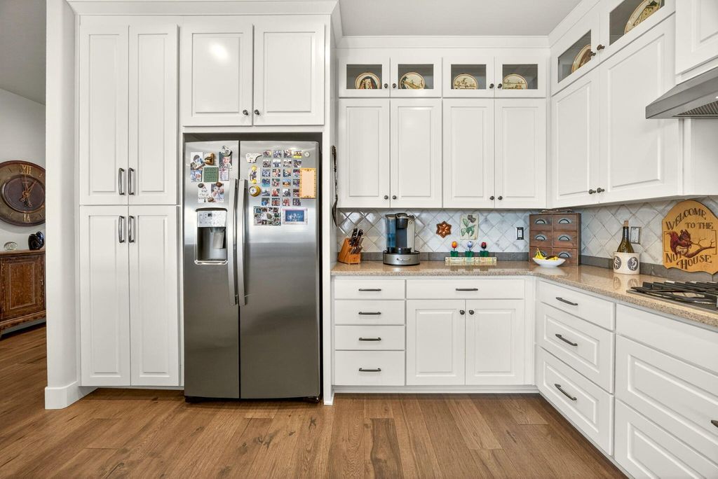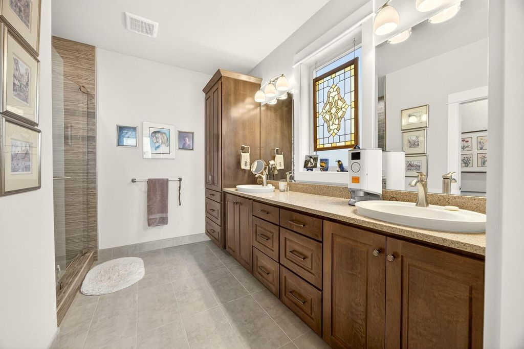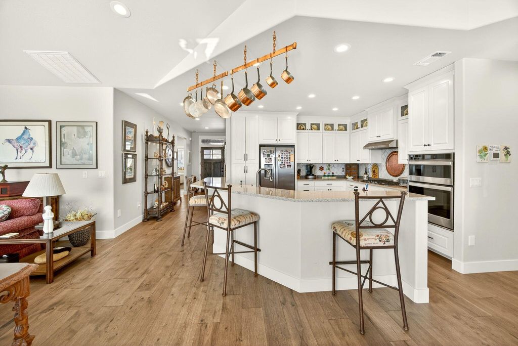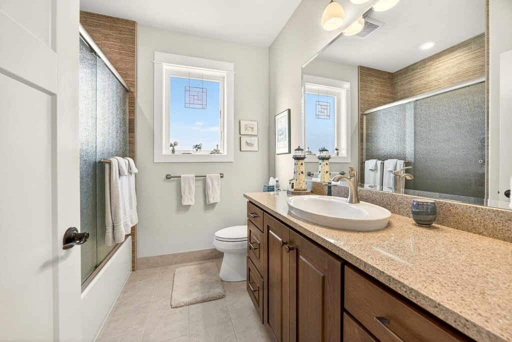 Charming, one-level, Craftsman style home by Mahar Homes in the sought-after Summerfield Subdivision. Filled with natural light, this home showcases stunning built-ins along the fireplace wall and in the dedicated office. Enjoy a beautiful backyard with peaceful mountain views from the covered patio space. Thoughtful finishes include: an open floor plan, quartz countertops, peninsula island kitchen, gas fireplace, custom cabinetry, hardwood floors in the main living areas, and tile floors in the bathrooms and laundry. The primary suite features a walk-in closet, double vanity, and tile walk-in shower. The whole house vacuum system, refrigerator, washer and dryer are included in the sale, if desired. The home is also Earth Advantage certified for comfort and energy efficiency.