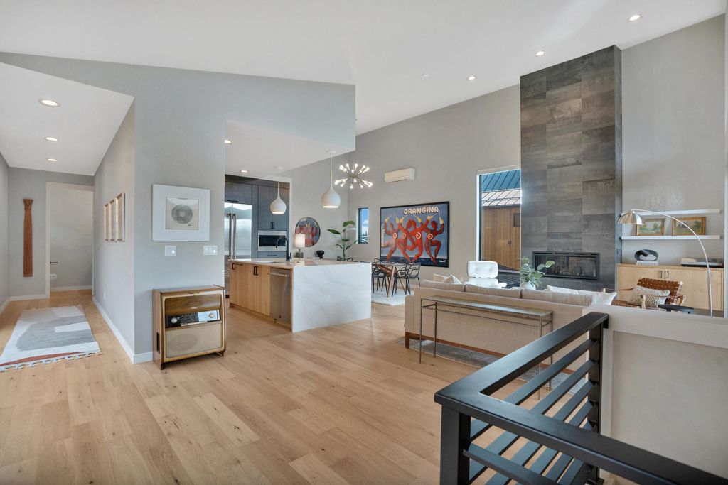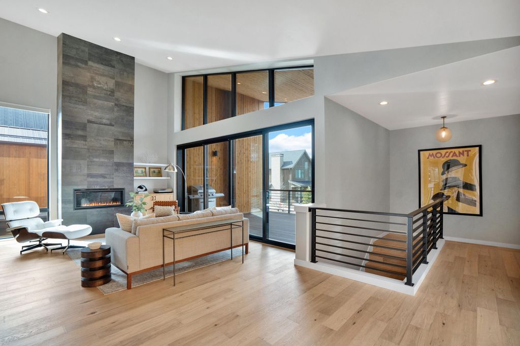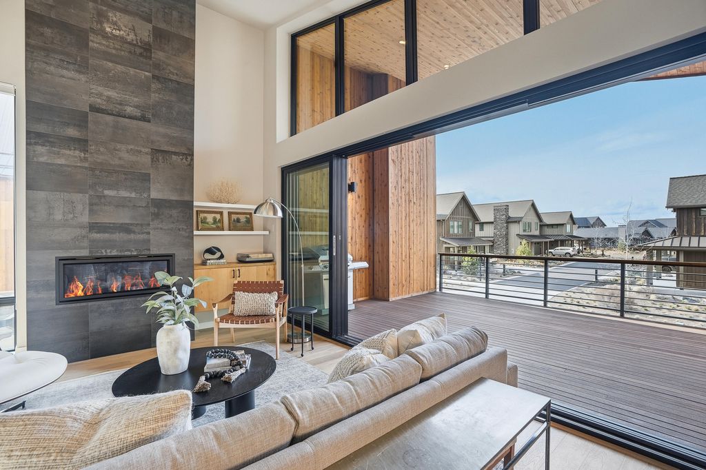 Contemporary Scandinavian design is beautifully crafted in this Tetherow Chalet. Ideally located steps from the owner's pool and resort amenities, with miles of hiking and biking trails nearby. The reverse-living floor plan maximizes light and views with soaring windows, vaulted ceilings, a sleek fireplace, and sliding glass doors that open to an oversized covered deck for seamless indoor/outdoor living. The kitchen has been extended with an oversized quartz waterfall island, custom cabinetry, and a JennAir appliance package. The main level hosts a spacious primary suite with panoramic eastern views and a spa-like bath, while the entry level offers two ensuite bedrooms and a generous mudroom. An oversized 3-car garage provides ample room for vehicles and gear. Convenient to Mt. Bachelor, and minutes to the Westside's best dining and downtown Bend.