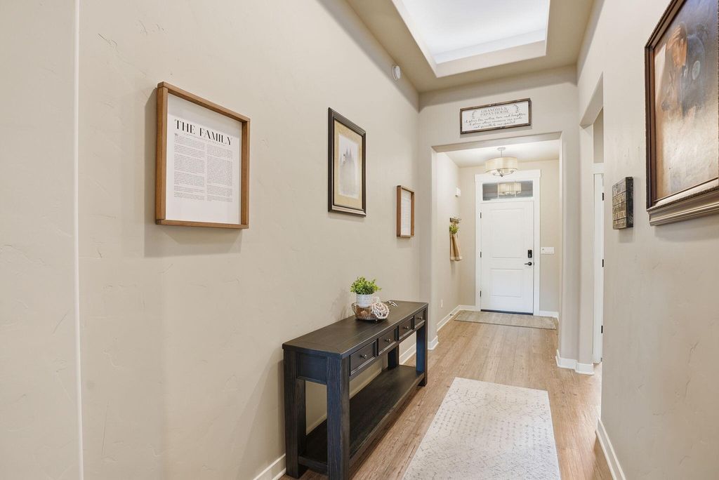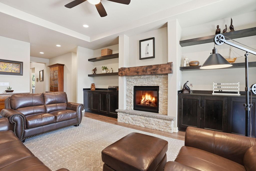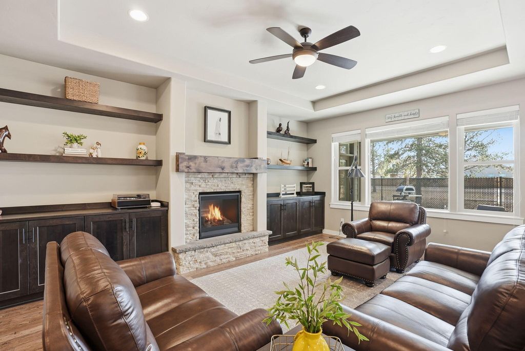 Welcome to this beautifully crafted Pahlisch home in the desirable Crescent Creek Community of La Pine! This single-story, 3-bed, 2-bath home offers 1,928 sq ft with custom built-ins and upscale finishes throughout. The Great Room features a coffered ceiling, gas fireplace, and flows into a kitchen with quartz countertops, stainless appliances, corner pantry, and center island. The primary suite boasts a coffered ceiling, walk-in closet, dual sinks, and tiled shower. Enjoy the covered back patio overlooking a common area with no rear neighbors. Highlights include luxury vinyl plank floors, tandem 2-car garage, xeriscape landscaping with drip system, and Craftsman exterior details. Community clubhouse and park included. Just minutes from Mt. Bachelor, amazing lakes and the great outdoors -- a true Central Oregon outdoor paradise!