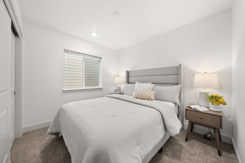 Welcome to the Astoria at Feather Ridge, a single-level home offering 2 bedrooms, 1 bathroom, and 880 square feet of well-designed space. Experience townhome living designed for the Central Oregon lifestyle. This thoughtfully planned home blends the comfort of a standalone feel with the convenience of a lock-and-leave townhome. Unlike traditional designs, there are no shared living space walls with a neighbor; the only connected portion is a secure, private storage area, offering privacy and peace of mind. Inside, vaulted ceilings and abundant natural light create an open, airy atmosphere, complemented by stylish quartz countertops in the kitchen. An attached two-car garage provides ample space for your outdoor essentials. Perfect for those who value space, privacy, and low-maintenance living, this home offers a fresh take on townhome life in Central Oregon.