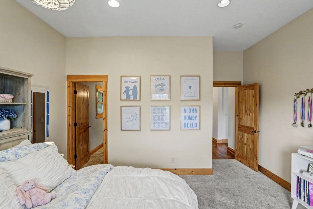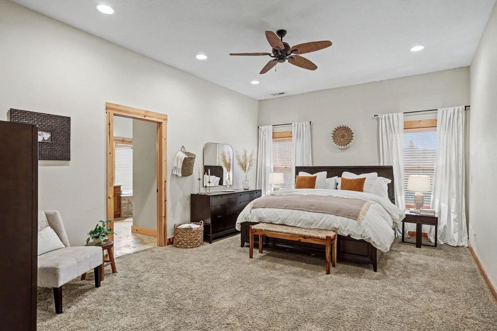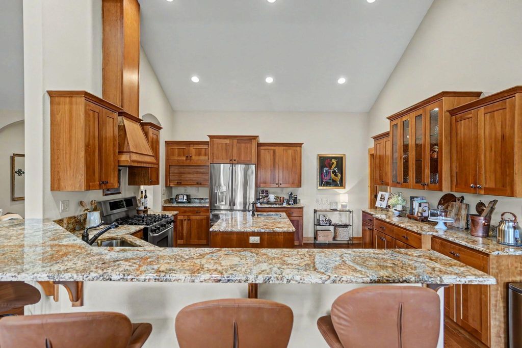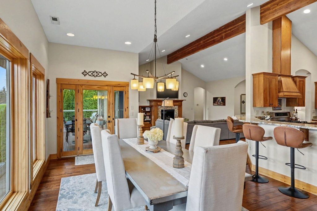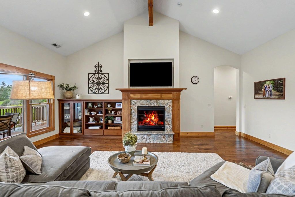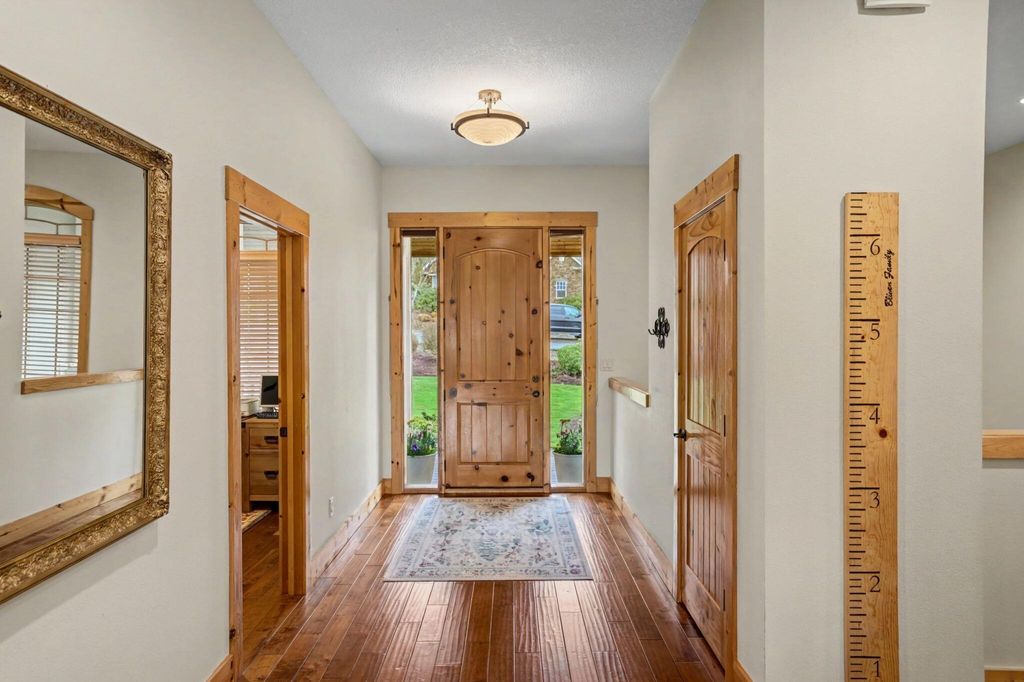 Set on a spacious 1/3 acre lot, this luxury home offers quality finishes, thoughtful design, and room to live and entertain. The main living area features 10-foot ceilings with a striking 16-foot vaulted ceiling and exposed beam, creating a bright, open feel. Handscraped hardwood floors add warmth and character. The gourmet kitchen includes granite countertops, stainless steel appliances, and a walk-in pantry with custom shelving and abundant storage. Updates in 2025 include new tankless water heaters, refrigerator, and dishwasher. The home also features a dedicated office and separate den for flexible living or workspace. The spacious primary suite offers a soaking tub, walk-in shower, and large walk-in closet. All bedrooms are en-suite with walk-in closets. The lower level includes a large bonus room, bedroom, and full bathroom. Outdoor living features a covered patio & deck, large backyard, oversized two-car garage, detached one-car garage & long driveway with potential RV parking.