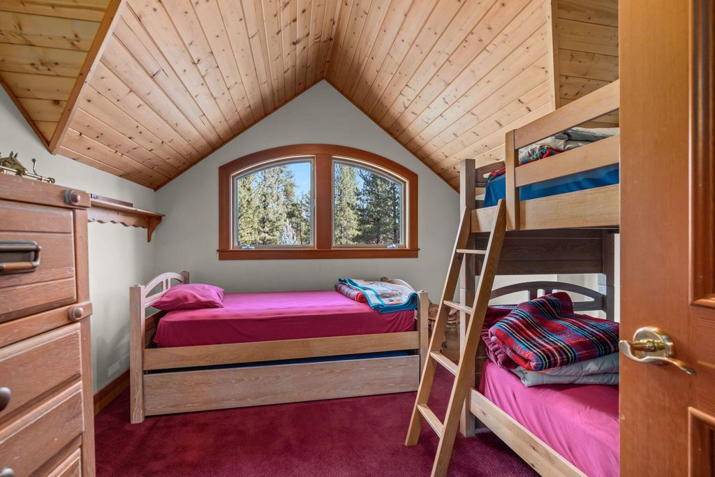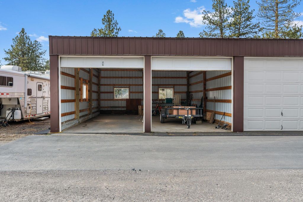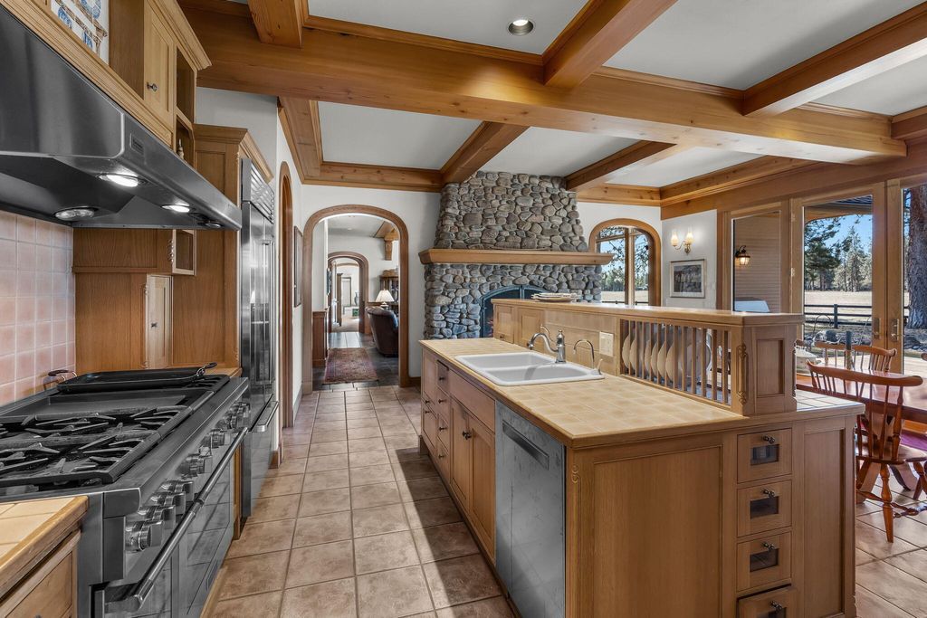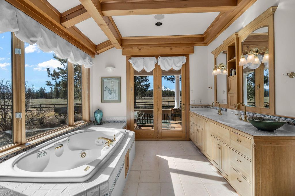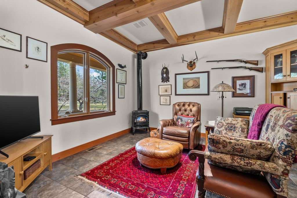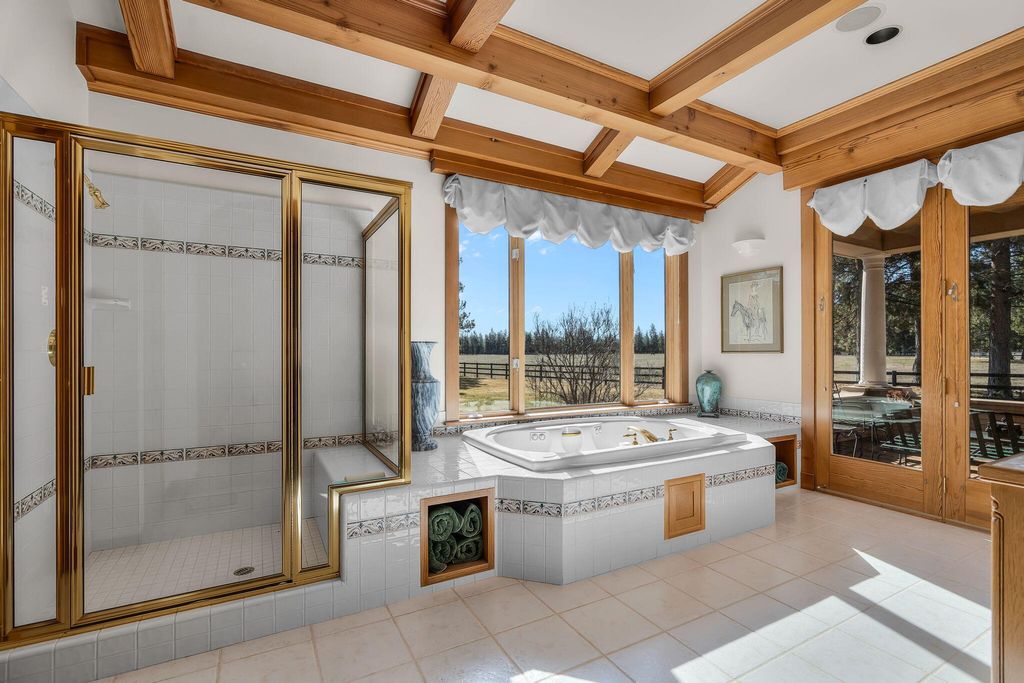 Experience mountain living perfection in the premier equestrian community of Cascade Meadow Ranch. This 4,448 SqFt custom estate on 2.29 private acres boasts stunning Cascade Mountain views & seamless main-floor living. The 4 bed, 5 bath home features soaring vaulted ceilings, exquisite woodwork & Montana river rock fireplaces. A gourmet chef's kitchen offers a Thermador 6 burner range & premium appliances, while the main-level primary suite serves as a luxury retreat with a soaking tub & propane fireplace. Dual stairwells lead to a versatile bonus room, bedrooms & bunk room. The property includes an attached 2 car garage plus a detached 1,510 SqFt shop with a finished upstairs bonus room & 3 car garage. Enjoy a new roof, redwood siding, & covered cedar decks overlooking a landscaped yard with a tranquil waterfall & pond. This gated community provides indoor/outdoor arenas, horse stalls, 3 RV spots, clubhouse, tennis/pickleball & direct access to public lands.