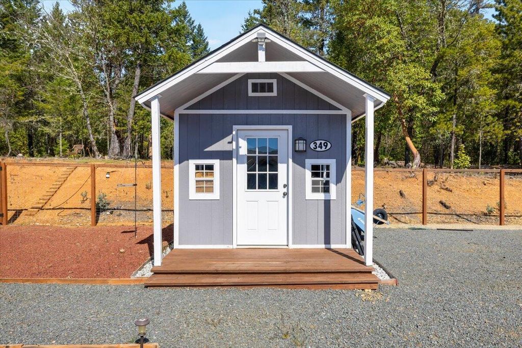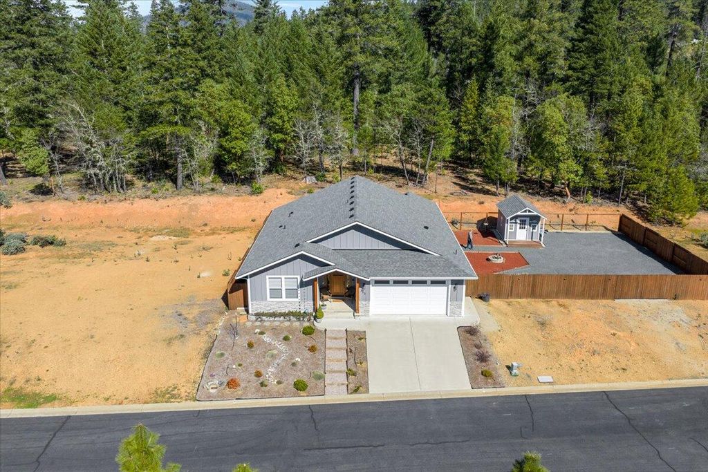 Immaculate home located in the Cedar Brook community! This 3-bed, 2-bath home offers 1,772sqft on a spacious 0.26-acre double lot. The open great-room layout features vaulted ceilings, a modern kitchen with pantry, & a generously sized living area. The primary suite includes a large walk-in closet & a custom tile shower. Durable Cor-Tek waterproof, scratch-resistant flooring runs throughout the home. The finished two-car garage features an extra-tall door, workbenches, & plenty of storage space. Outside, the additional lot creates abundant outdoor living space along with excellent parking for RVs, trailers, & more. Relax around the fire pit or enjoy the impressive powered studio building designed to complement the main home. The land is level & functional, with surrounding views, & it backs directly to BLM land. Access to community clubhouse provides spacious gathering areas & excellent amenities. A standout opportunity in one of the Illinois Valley's premier 55+ communities.
