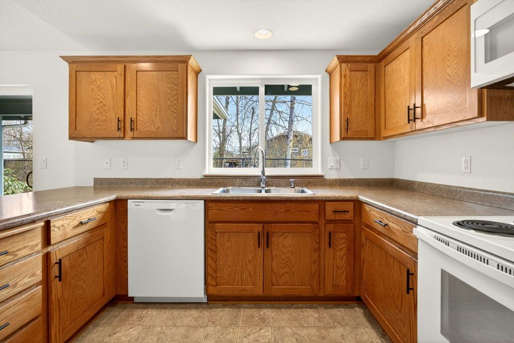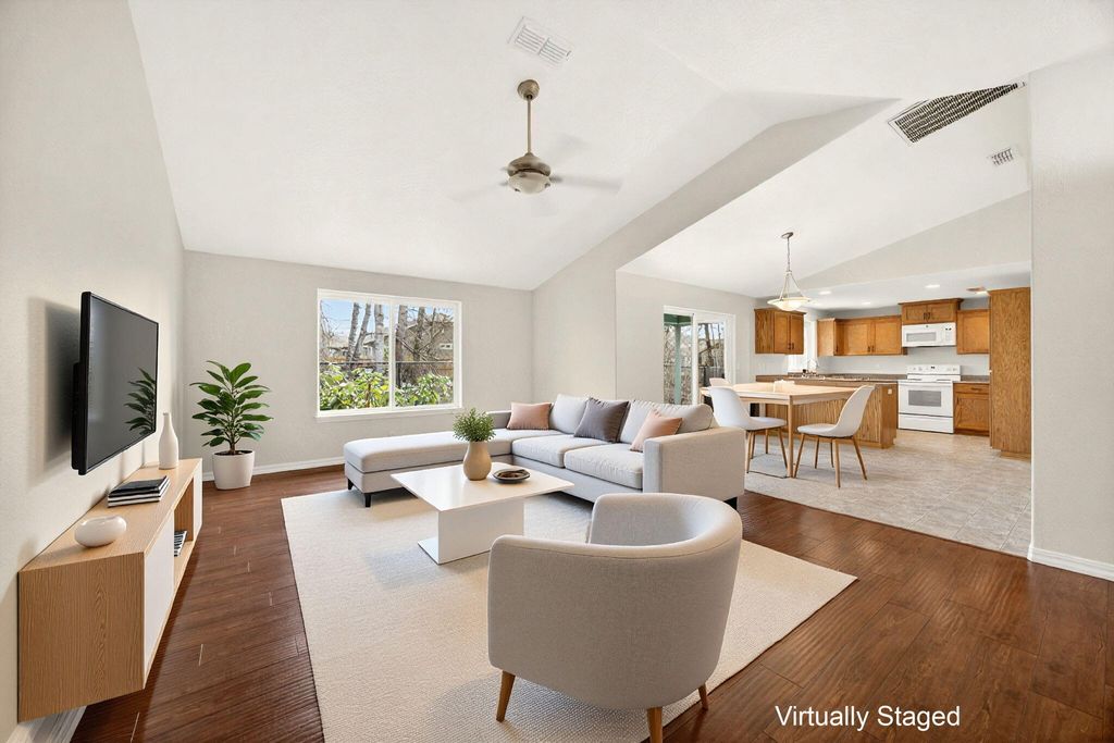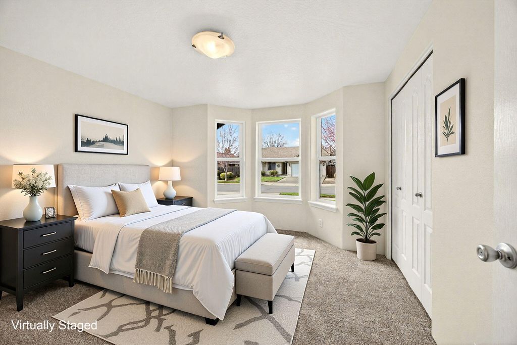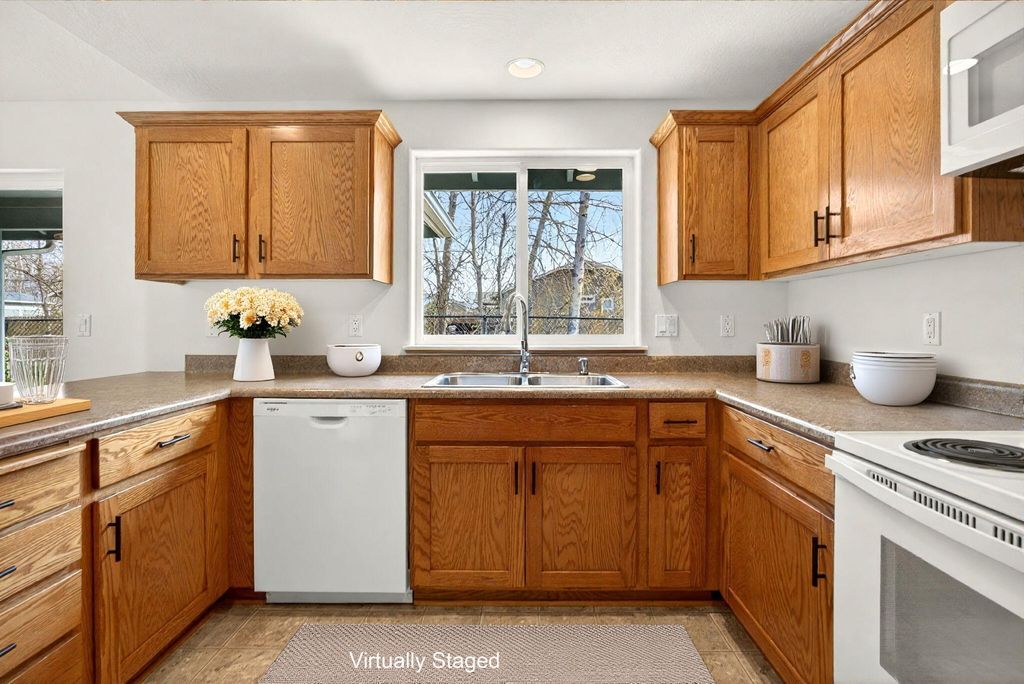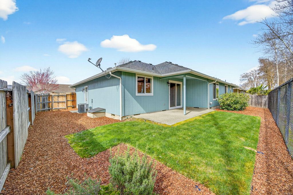 Charming Kirk Chapman Home in move-in ready condition! Built in 2008, this 3 bedroom, 2 bath home offers a freshly painted interior & recent updates including laminate/vinyl/carpet flooring, new cabinetry hardware & faucets. The open living room with vaulted ceiling, fan & picture window offer a light & bright spacious feel. The 2 bedrooms are filled with natural light from beautiful bay windows, and the primary bedroom features a walk-in closet & private bathroom. The kitchen/dining area has a large breakfast bar & sliding glass door for easy access to the covered patio and low maintenance backyard with natural vegetation, trees, and shrubs beyond the fence for added privacy. Forced air gas heat with central air, indoor laundry closet, plus a 2-car garage. Conveniently located near shopping, hospital, restaurants, YMCA & District 7 Schools. Seller is offering $1,000. credit toward Buyer's closing costs, plus a 1-yr Home Warranty! Some interior pictures have been virtually staged.