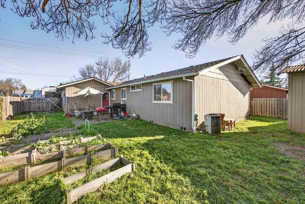 This fully fenced, affordable, and move in ready 3 bed/1 bath home is on a big lot with mature trees for shade and garden beds. It also comes with paid off solar panels.