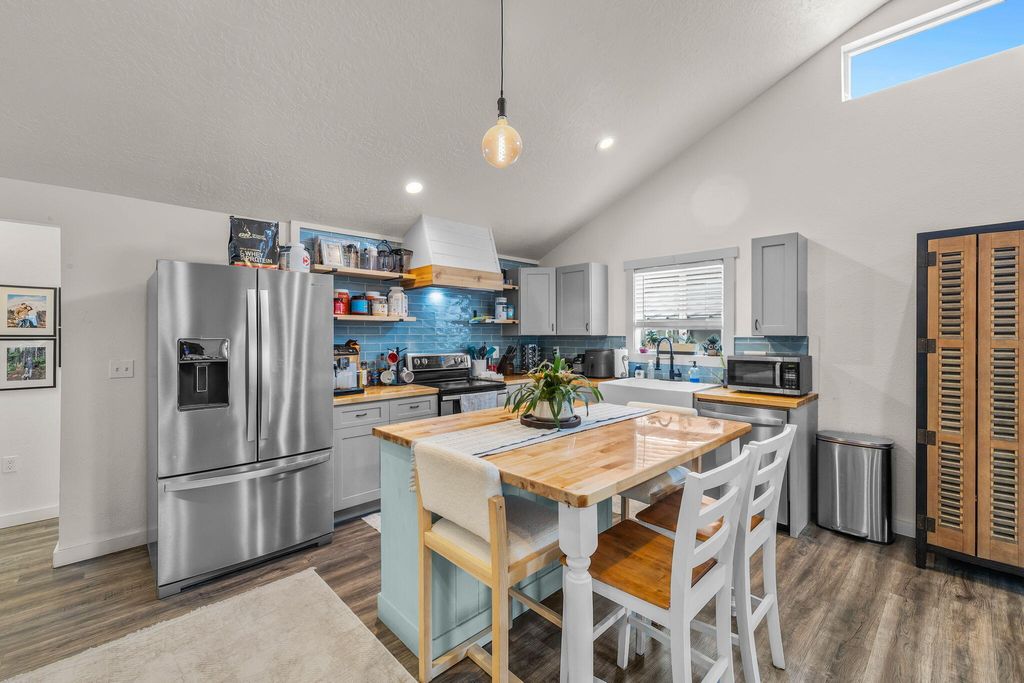 Charming Craftsman-Style Home in John Day!Welcome to this beautifully designed Craftsman-style home located in the heart of John Day. Featuring an open-concept layout with vaulted ceilings and abundant natural light, this home offers a warm and inviting atmosphere from the moment you step inside.The thoughtfully designed kitchen is a true centerpiece, complete with butcher block countertops, a farmhouse sink, tiled backsplash, and range with hood--perfect for cooking and entertaining. The kitchen flows seamlessly into the spacious living room, creating an ideal space for gatherings and everyday living.A convenient utility/laundry room provides additional storage and direct access to the back deck, making outdoor living easy and accessible. The spacious primary suite offers a relaxing retreat with a double vanity, large walk-in closet, and generous stall shower. Two comfortable guest bedrooms and a full guest bath provide plenty of space for family or visitors.