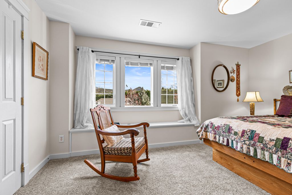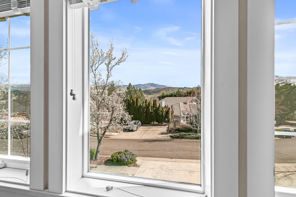 Secluded 4 bedroom home in a warm friendly Cul de sac. Impeccably landscaped front yard. This home offers ample sunlight, views of Grizzly Peak. Every room serves as flow and purpose. The large picture windows & high ceiling draws you into a relaxing opportunity to sit with your morning beverage & enjoy your quiet time. Vaulted ceilings in the living room, dining room & master bedroom with solid oak flooring are simply engaging. This amazing kitchen with modern appliances, an island that includes downdraft range includes grill. Double wall ovens, granite countertops, & custom cabinetry, making it ideal for both cooking & entertaining. Large main floor primary suite with walk-in closet, gas fireplace & access to the wraparound deck with awesome spa just outside the bedroom slider. In the front yard with separate front porch, low maintenance tile roof, both of which set the house apart. Expansive 400 sq ft. deck great for outdoor living and entertaining.