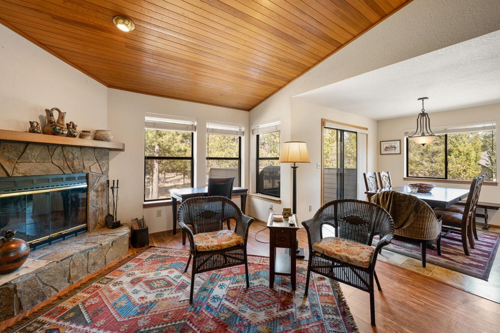 Tucked among the serene pines of Sunriver, this turnkey 3-bed, 2.5-bath condo offers the perfect blend of comfort and adventure. The vaulted great room features a cozy wood-burning fireplace and large windows overlooking beautifully maintained park-like grounds. The kitchen offers ample counter space, a breakfast bar, and flows to a private upper deck, perfect for coffee at sunrise or unwinding at sunset. The main-level primary suite includes an en-suite bath and generous closet space. Downstairs, two bedrooms offer room for guests, a home office, or both with direct patio access to enjoy the fresh mountain air. Located in Fairway Village, just steps from the Woodlands Golf Course and 40+ miles of bike paths, plus a private pool for owners. Only minutes to The Village at Sunriver and 20 miles to Mt. Bachelor, this fully furnished home is ideal as a full-time residence, vacation retreat, or rental. Come experience the magic of Fairway Village!