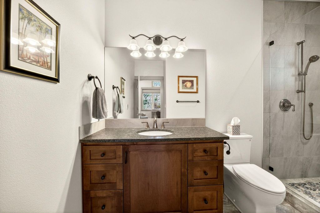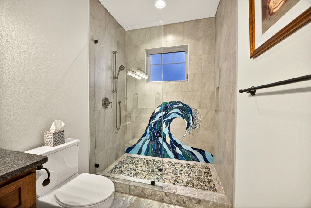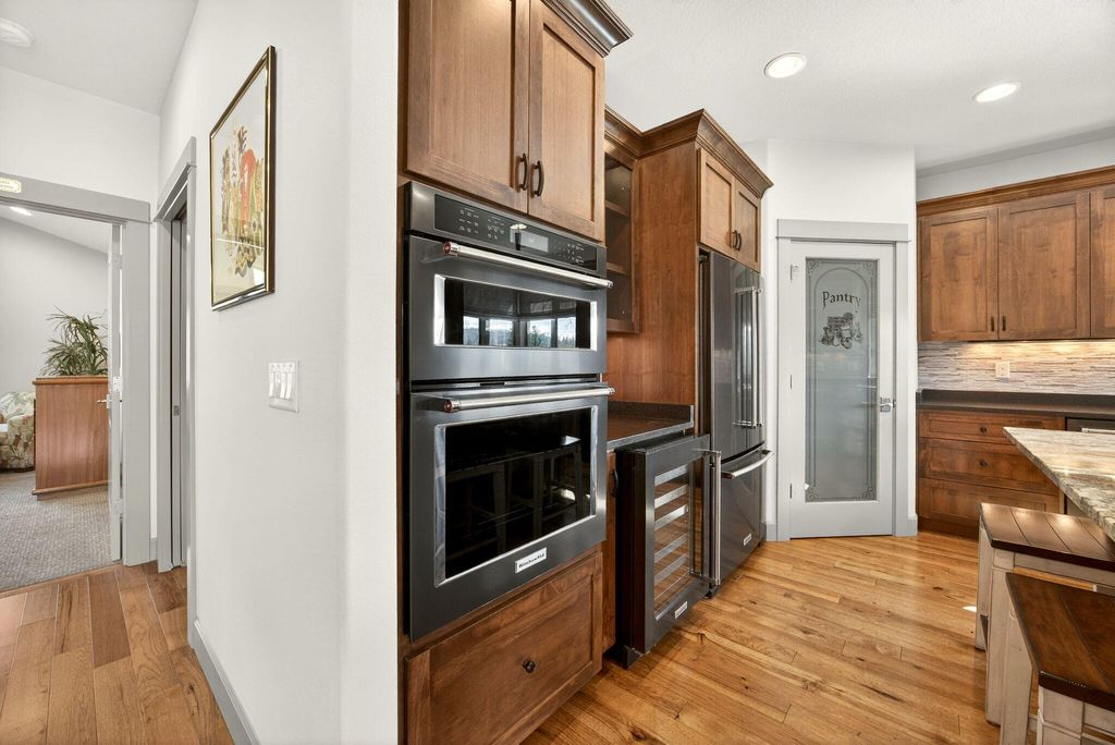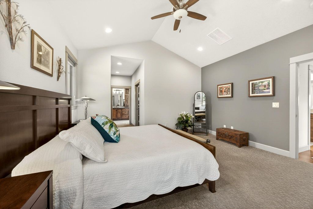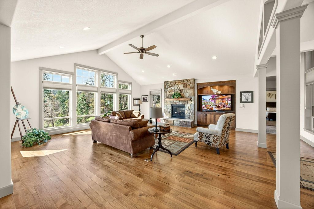 First time on the market, impressive 1 level w/great floor plan. Minutes to downtown Jacksonville. Southern exposure + backs up to JACKSONVILLE Trail system! Covered front porch, tile entry, floor to ceiling stone gas log fireplace w/built-in cabinets, large vaulted open beam ceiling & floor ceiling windows to take in the views! Lg open kitchen w/large island, granite counters, black stainless steel appliances, dble ovens, wine fridge, walk-in pantry, corner sink & Dining room between kitchen & great room to a covered deck. Primary suite w/vaulted ceilings, lg windows, sitting area, walk-in closet, coffee bar, walk-in tile shower, tile heated floors, dbl sinks & water closet. Spacious 2nd primary suite w/vaulted ceilings, w/full bath, lg tile shower w/dual heads, heated tile floors. 3rd bath w/lg deep tub, tile shower, tile floor & granite counters. 3rd bdrm/office w/built-in bookcases & see-through fireplace. Hickory wood floors in great room, dining room kitchen hallways & bdrm/offic