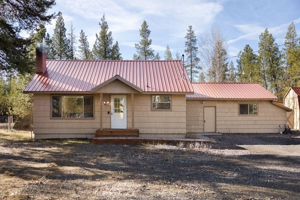 Unique private property on 3 acres bordering BLM land with endless possibilities. Gated entry provides added privacy and security. The property features a 1,200 sq ft detached frame shop, perfect for hobbies, storage, or projects. Interior highlights include new carpet, updated lighting, and a DEQ-certified wood-burning stove in the living room for cozy winter evenings. Heating includes baseboard and cadet units with window A/C for summer comfort. The septic system was replaced in 2021. Home offers five bedrooms, four of which do not have closets, providing flexibility for office space, guest rooms, or hobbies. A rare opportunity to enjoy space, privacy, and direct access to wide open land.