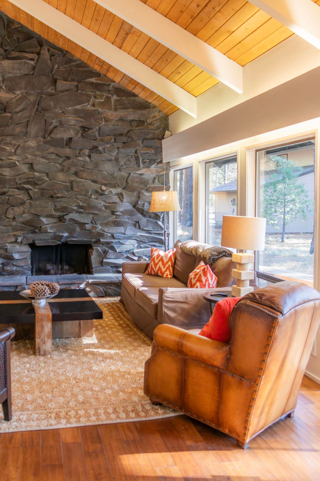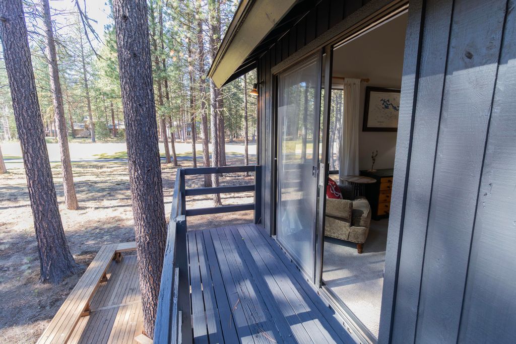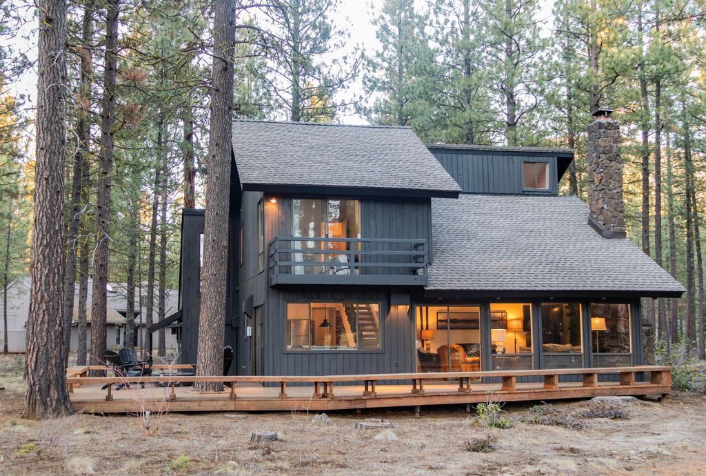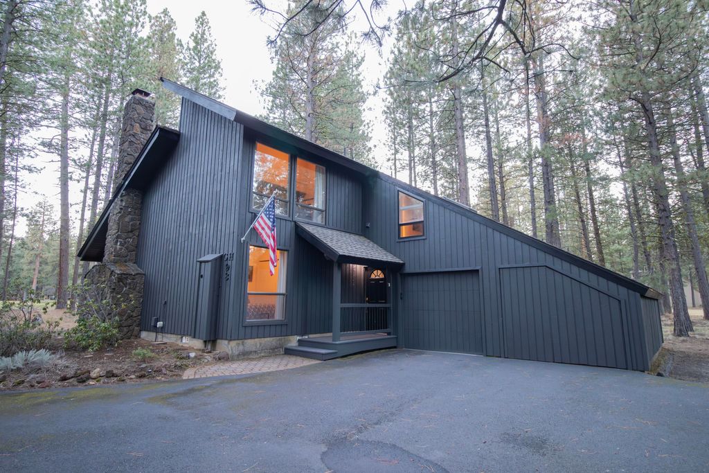 Located on Bracken Lane, one of the most desirable streets in Black Butte Ranch, this mid-century modern retreat offers a rare opportunity to own one of the largest lots on the Big Meadow Golf Course. Perfectly positioned on the sixth tee box with views stretching to the fifth green and fairway, the home offers sweeping golf course vistas and the unique ability to step directly off your deck onto the course. The expansive lot provides ample space to expand or remodel while maintaining full golf course frontage. The 4-bedroom, 2-bathroom home comfortably sleeps up to 11 and features classic mid-century details including a floating staircase and striking stone fireplace. Large windows fill the home with natural light and frame the surrounding landscape. Ideally located within walking distance to the Lakeside Pool & Bistro, Black Butte Ranch Lodge, Robert's Pub, Big Meadow Golf Course, and the Meadow.