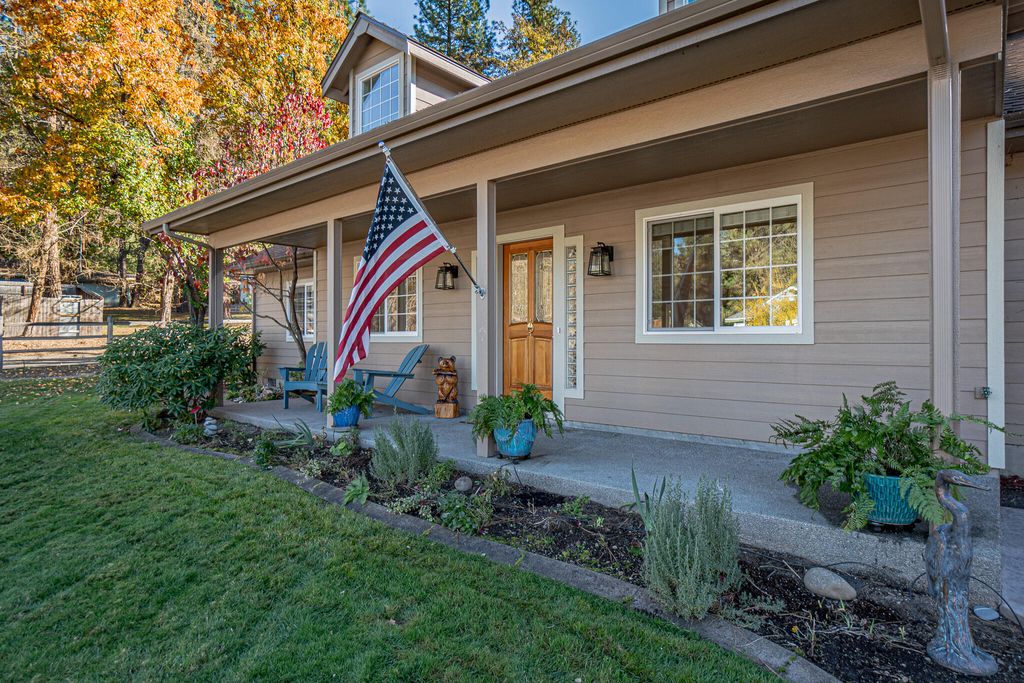Stunning custom built in sought after Anglers Cove in beautiful Shady Cove. This is a quality neighborhood and just steps from the Rogue River on a peaceful cul-de-sac and walking distance to the famous Rogue River, known for world class fishing, rafting hiking and more. The home features 4 bedrooms, all on the main floor plus a livable loft space accessed by a spiral staircase . New The dream kitchen welcomes you with ample cabinets and pull-outs throughout,There is also a finished bonus room above the finished garage for guests or gym, office, art studio, or? Large primary suite with ADA shower and easy access to the rear covered patio. New roof in 2025.All the bedrooms are very generous in size. Sweeping vaulted ceilings with dormer windows allows for ample natural lighting. The lot is large at .31 / acre and features mature plantings with fruit trees and raised beds and a very private rear yard with covered patio, garden area has the feel of a sanctuary .