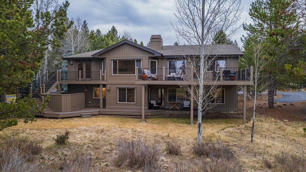 Discover your dream retreat in Sunriver, nestled on the serene Woodlands Golf Course. This home offers golf course views in a private location w/ plenty of relaxing spaces to spend quality time w/ loved ones. Spacious open-concept floor plan showcases a great room w/ vaulted ceilings and a cozy double-sided gas fireplace. The kitchen is equipped w/ granite countertops, double ovens & stainless appliances. The layout provides separate spaces, both upstairs & downstairs which includes 4 bedrooms & 3.5 bathrooms - 2 bedrooms are on-suites, the additional 2 bedrooms share a bathroom, plus there is a powder bath. Enjoy delightful outdoor living w/ a hot tub & expansive Trex decking in the front and back. Large shop/flex room off garage. Quick access to trails and Benham Falls. Sold furnished, this home is ready for you to create lasting memories in the beautiful Sunriver community.