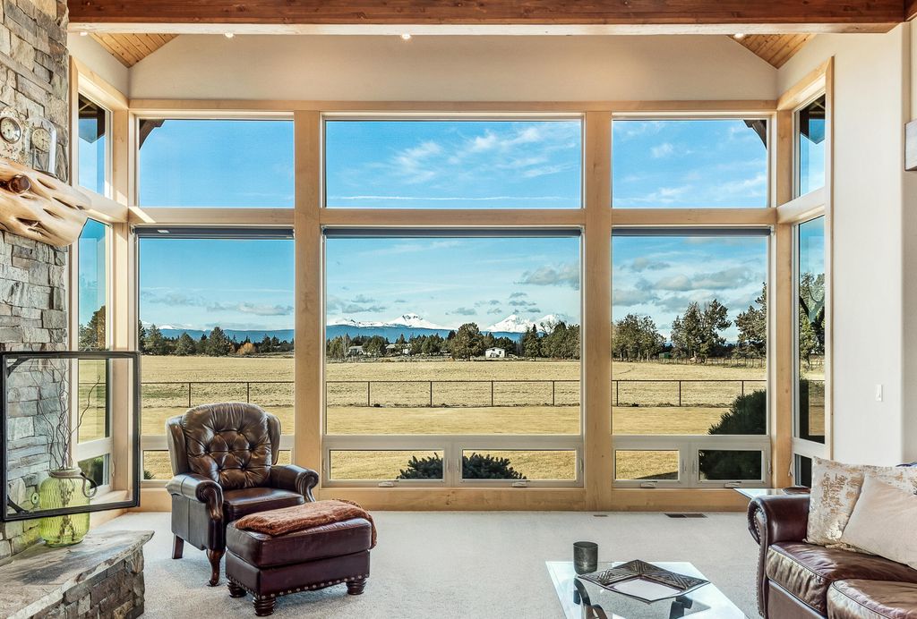 Experience exceptional single-level living with sweeping mountain views in this quality-built Norman Building & Design home. The open floor plan captures stunning vistas from nearly every room. Interior highlights include exposed wood beams, vaulted ceilings, two custom fireplaces, and a gourmet kitchen featuring cherry cabinetry, slab granite, and Viking appliances. Set on 25 fully fenced acres, the property includes 21 acres of automated irrigation and a beautiful lined pond. Three like-new outbuildings offer outstanding versatility: an enclosed 50x70 steel barn with power and water, an updated 50x25 shop with office/entertaining area and powder room, and a large storage/art studio building. The property borders over 13,000 acres of public land with endless trails for hiking, biking, and horseback riding. An extraordinary blend of craftsmanship, privacy, and functionality--schedule your private showing today, you will not be disappointed!