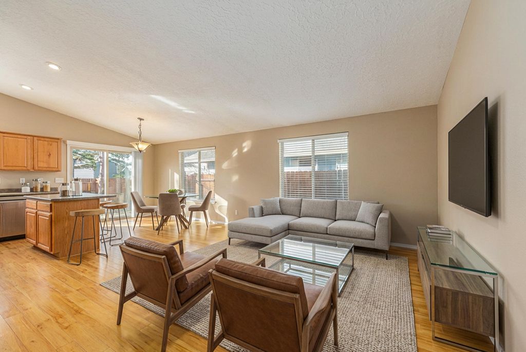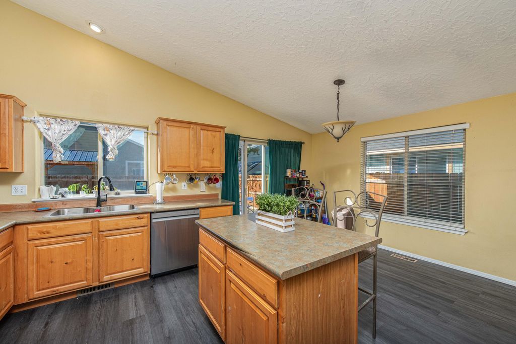 Welcome home to this charming 3-bedroom, 2-bath stick-built home. Enjoy new 2024 appliances including an LG refrigerator, dishwasher, and air-fry oven, plus new flooring throughout. The fenced backyard offers a fire pit, fresh gravel, a BBQ area, and space for a garden beside the house. A back patio creates an easy spot for entertaining. The 2-car garage features built-in shelving for extra storage. With no HOA, close proximity to town, and thoughtful updates inside and out, this home is an ideal first-time buyer opportunity.