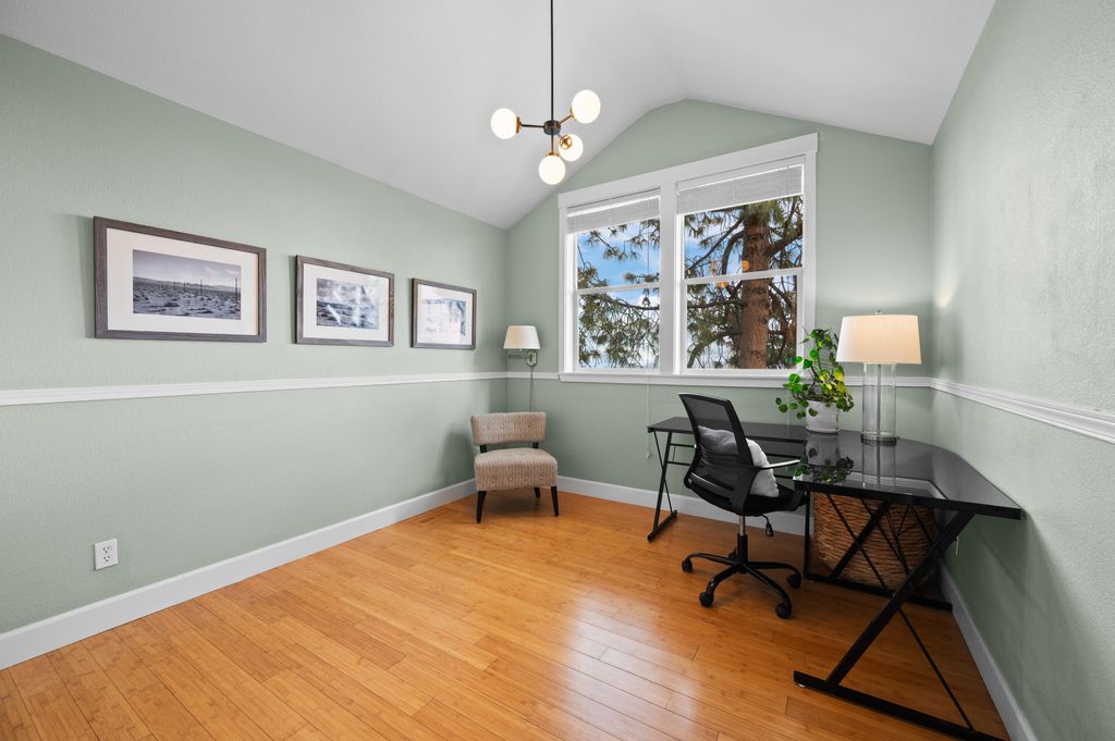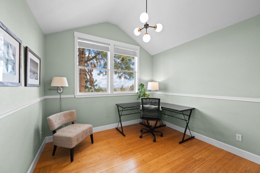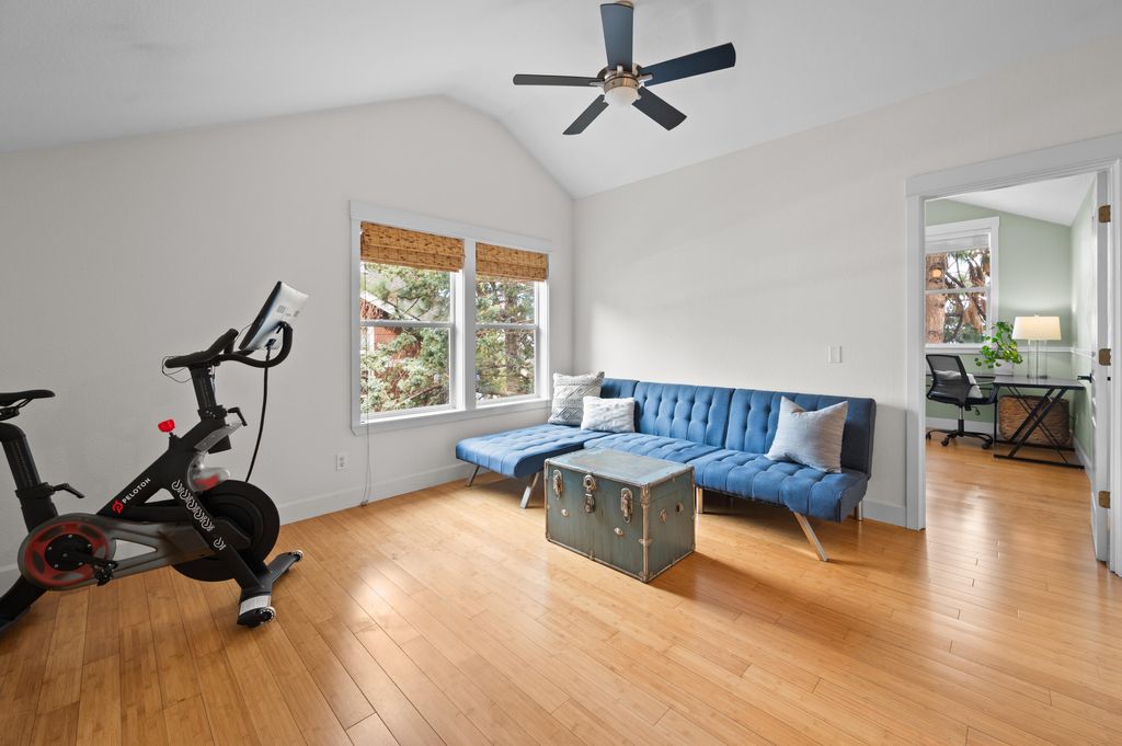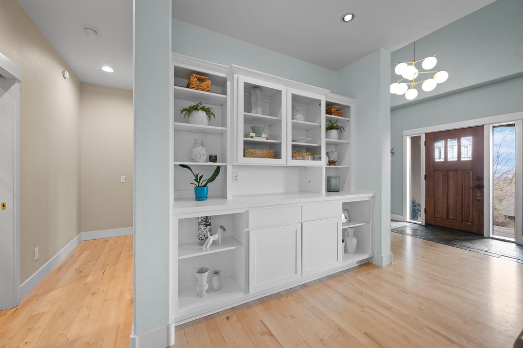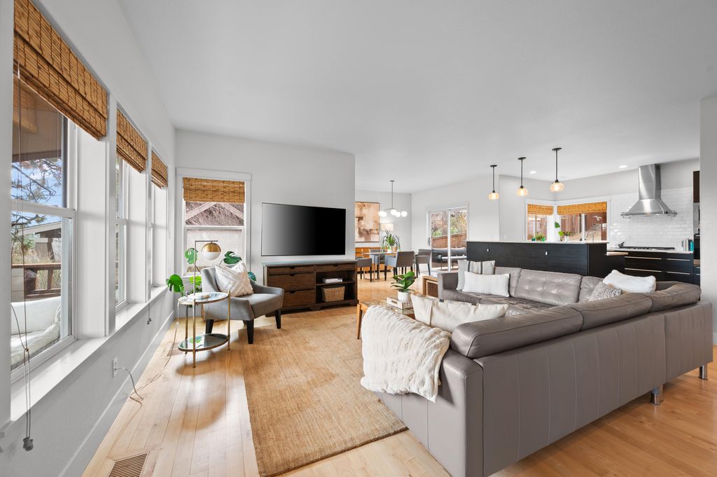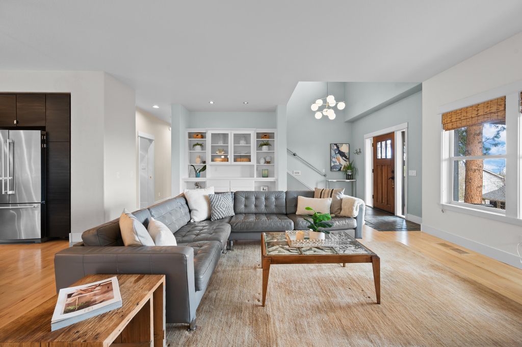 Located in the sought-after community of Awbrey Village on Bend's Westside, this timeless Craftsman home offers stunning recent updates throughout and captures sweeping easterly views of the Ochoco Mountains and Powell Butte. Light-filled great room flows seamlessly into the recently remodeled chef's kitchen featuring sleek quartz countertops, subway tile backsplash, stainless appl, & custom cabinetry & drawer system for efficient storage. Spacious dining area opens to a private deck and fully-fenced backyard, ideal for entertaining al fresco. Generous main level Primary Suite offers serene views, walk-in closet, and a completely remodeled spa-inspired bath with dual vanity, soaking tub, and tiled shower. Upstairs: 3 additional bedrooms, remodeled 2nd full bath, and loft flex space. Experience epic sunrises each morning and sparkling city lights at night from the expansive covered front porch. Walk to neighborhood park and just minutes to Westside schools and Bend's favorite amenities.