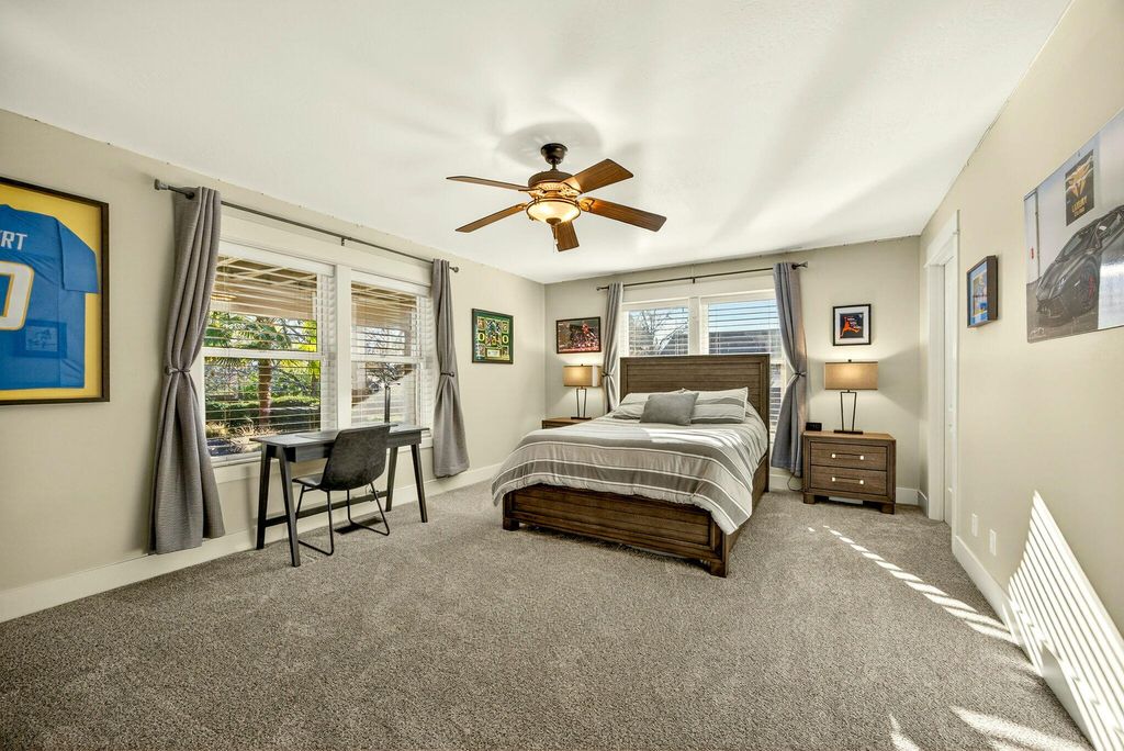 Located in East Medford's sought-after Summerfield neighborhood, 3874 Cherry Ln features a main-level primary bedroom and flexible office/fourth bedroom plus an expansive deck with hot tub & outdoor kitchen, perfect for indoor-outdoor living & entertaining, all from an elevated position with mountain views. This move-in ready home has been thoughtfully updated and meticulously maintained, with a light-filled main level, tall ceilings, and abundant windows in an open layout connecting kitchen, dining, and living areas with a gas fireplace & built-ins. The lower level has two bedrooms, a large family room, & patio access to a flat backyard, plus a walk-in crawlspace with ample storage. Located in an established neighborhood with mature landscaping, near Hoover Elementary, Village Center Park, Asante & many other medical facilities, this home reflects pride of ownership & high-end features throughout.