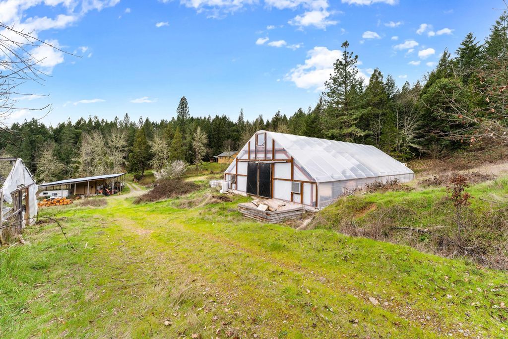 160-acre private paradise. Dreaming of being self-sufficient w/modern perks: high-speed internet, freeway minutes away.Main home: 1,008 sq ft, 2 bed/1 bath, updated w/stainless steel appliances, fresh ext. paint, carport, Fujitsu mini-split (2025), water heater (2024), washer (2025). Hand-operated well pump backup. Outbuildings: 2-car garage w/fresh ext. paint.1,800 sq ft greenhouse (electric, sliding doors, light-deprivation for year round growing ) 960 sq ft shop (cement floors, 3 rooms, door (2025), Daikin mini-splits, water plumbed to bldg.,465 sq ft workshop + 1,278 sq ft covered outdoor area, 220 sq ft auxiliary shed, 200 sq ft tin shed, guest quarters in progress (sheetrocked, wired) Land: marketable timber, pastures, 2 garden areas, fruit trees, 4 seasonal ponds & hot tub. Recently graded/rocked road. New septic being installed.Qualifies for 2 annual landowner preference hunting tags. Sq ft per Tax records/seller estimates. Buyers encouraged to conduct independent due diligence